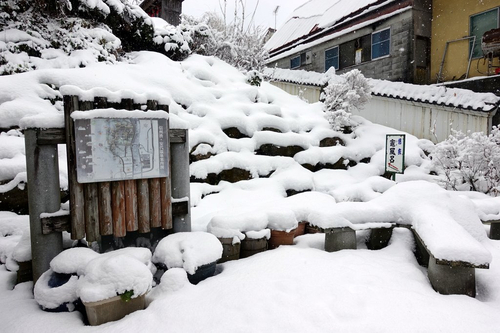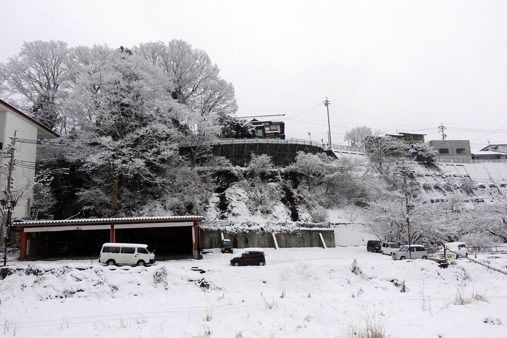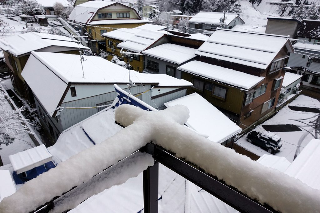 1. Вечером шёл снег. Мы попарились в традиционных горячих ваннах, и легли спать. За ночь навалило прям много. Когда мы проснулись наутро, всё было покрыто толстым слоем свежего снега.