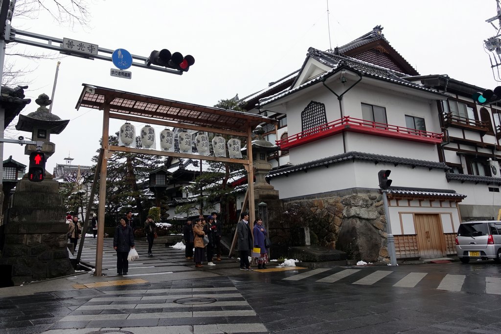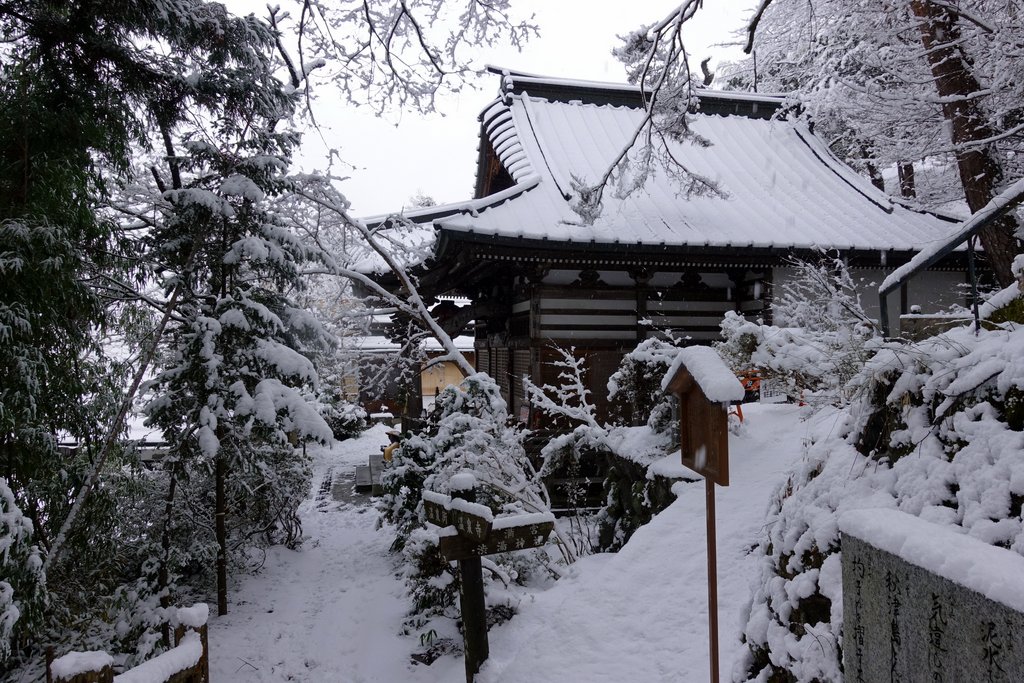 6. Ворота храма в снегу. Особо красивы под белыми шапками традиционные каменные фонари.
