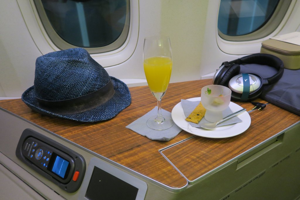 Но в итоге я всё же выбрал голубую. Ни разу об этом не пожалел, даже когда меня из-за неё поливали грязью в главном блоге рунета. Мне всегда казалось, что это очень красивый головной убор. Первоклассный. Посмотрите, как хорошо он смотрится в первом классе Cathay Pacific:
