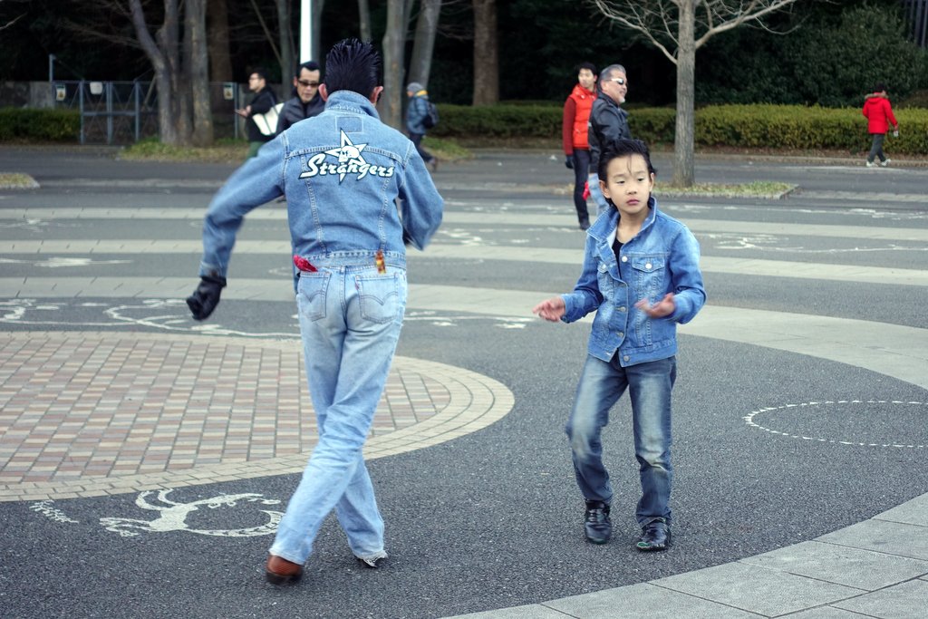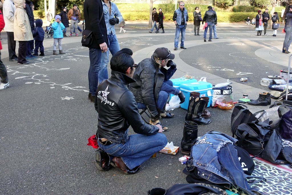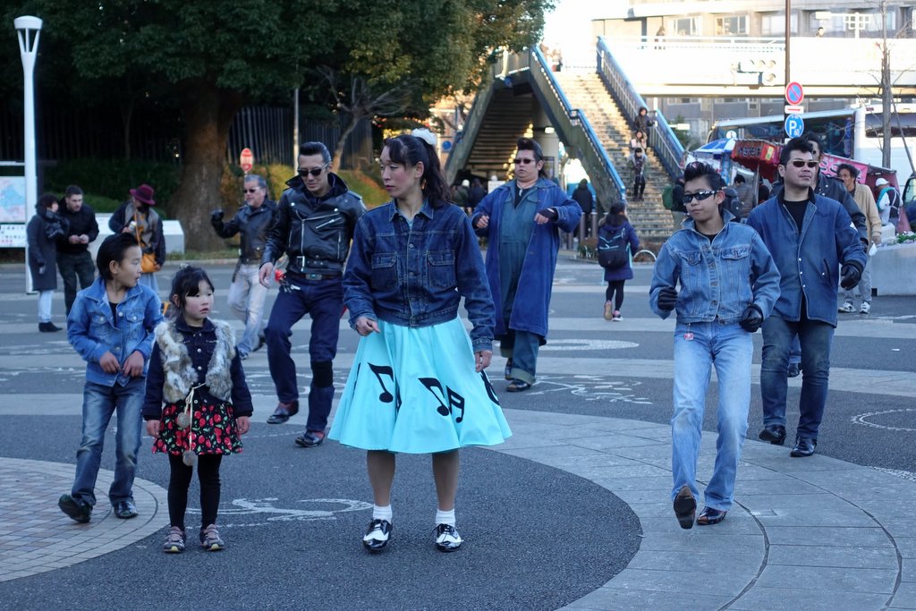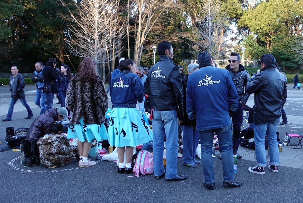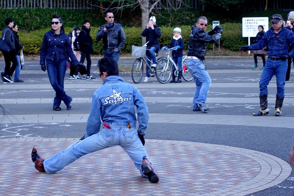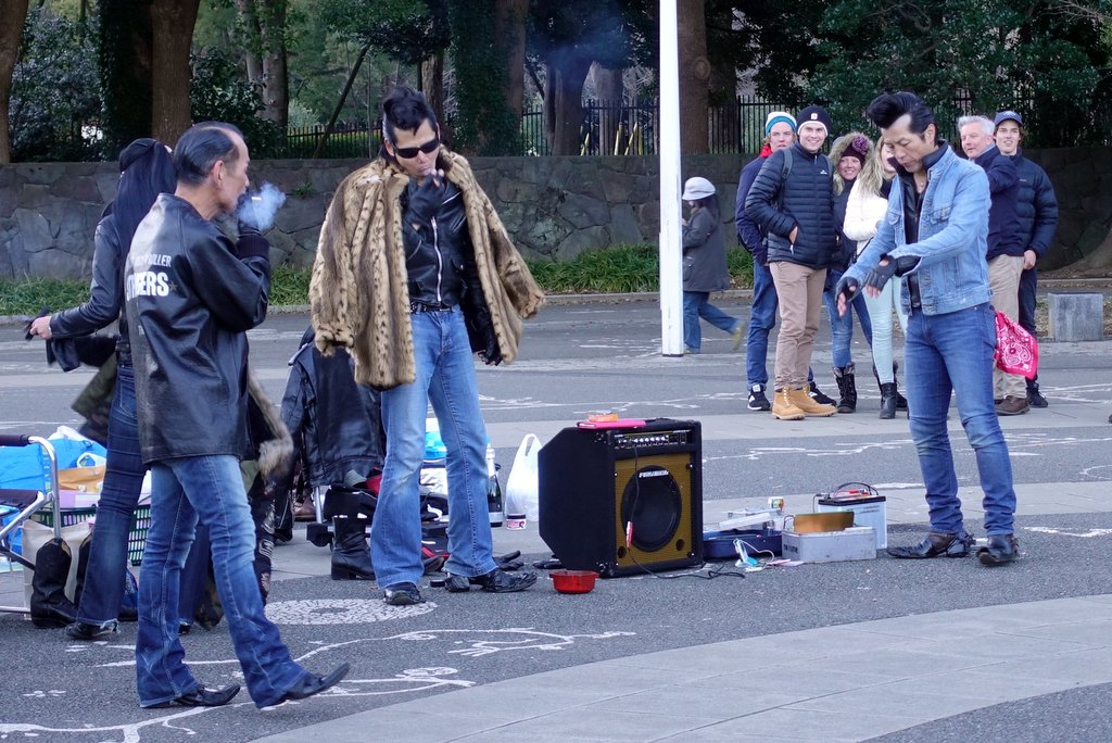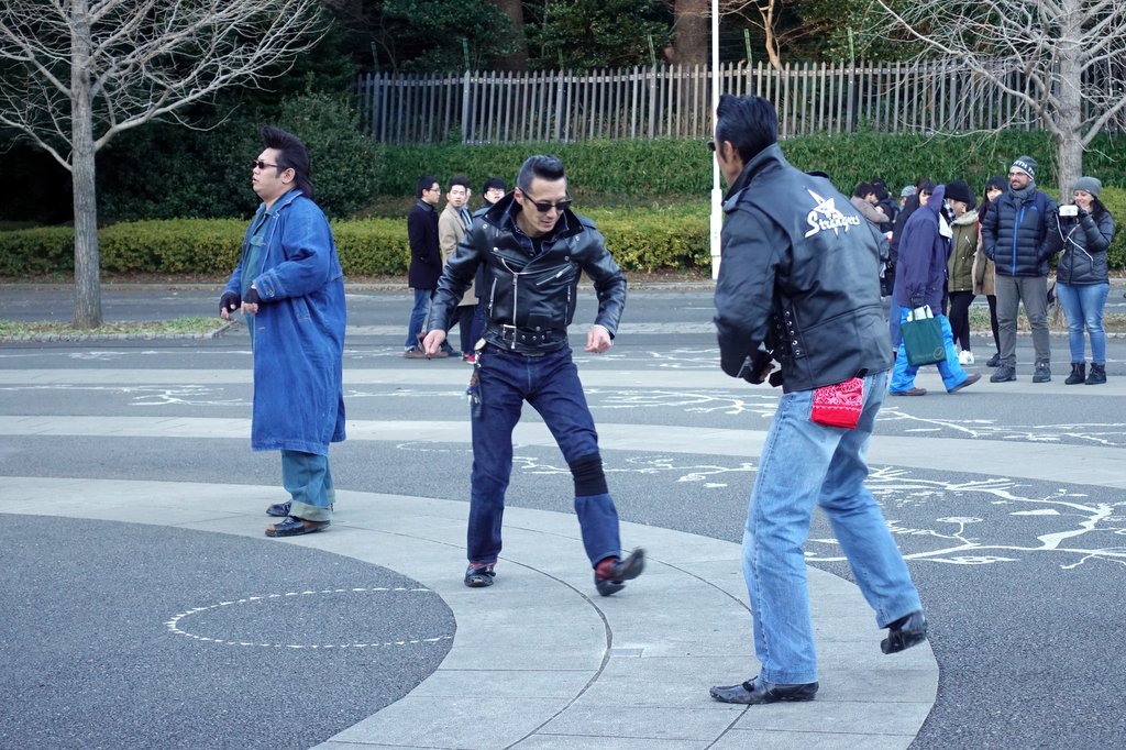В Токио действительно есть всемирно-известная тусовка танцоров. Каждое воскресенье они собираются у входа парка Ёёги, и устраивают там танцульки под рок-н-ролл в стиле 1950х и 60х. Но то весной и осенью. А вот будут ли они там зимой в такой мороз - в этом я совсем не был уверен. Но мы решили на всякий пойти посмотреть. Как оказалось, зря переживали.