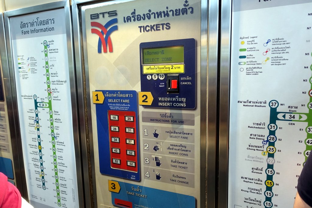 16 Особого внимания заслуживает глупейшая система продажа жетонов на метро. В зависимости от того куда вам надо, проезд будет стоить от 20 до 50 бат. Проблема в том, что автоматы принимают только монеты. (Самая крупная из распространённых - 10 бат.) Автоматы продают билеты только по одному.