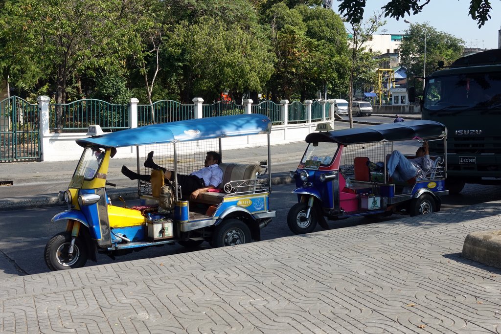 5 В них нет счётчиков, надо заранее договариваться на цену. Водитель вряд ли согласится куда-то поехать дешевле, чем за 60 бат (меньше $2). Если вдруг вам назвали смешную цену в 20 бат, знайте, скорее всего это развод, и вас везут на незапланированный шопинг. Зато если уже договорились, водитель будет стараться как можно быстрей выехать из пробки - ведь чем быстрее он вас довезёт, тем быстрее освободиться. Туристу может показаться, что они водят довольно опасно и агрессивно, однако мне не доводилось видеть ни одной тук-туковой аварии. Так что держитесь покрепче, и наслаждайтесь местным колоритом.