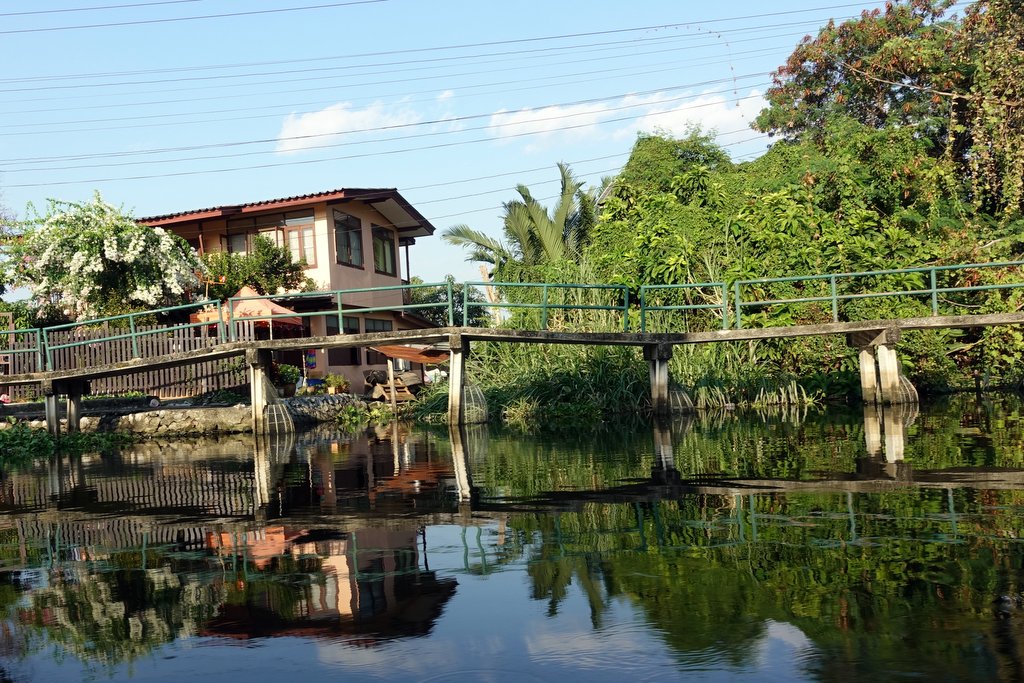 22 И вот тут то приходит пора раскрыть главную тайну города, о которой я так ничего и не узнал в свой первый визит. Оказывается если отойти чуть-чуть от центра и главных магистралей, в Бангкоке полно каналов. Когда-то весь город был покрыт их сетью не хуже той же Венеции, это была главная транспортная сеть сиамской столицы. Лишь с появлением автомобиля многие из них в центре города решили закопать, чтобы построить дороги. Дороги теперь стоят, и каналы снова помогают жителям Бангкока перебираться из одного района в другой.