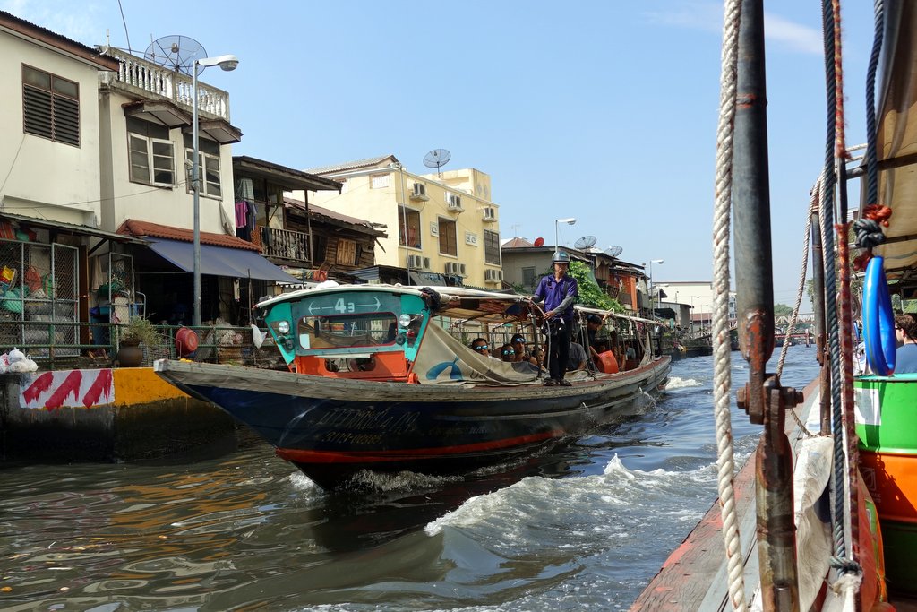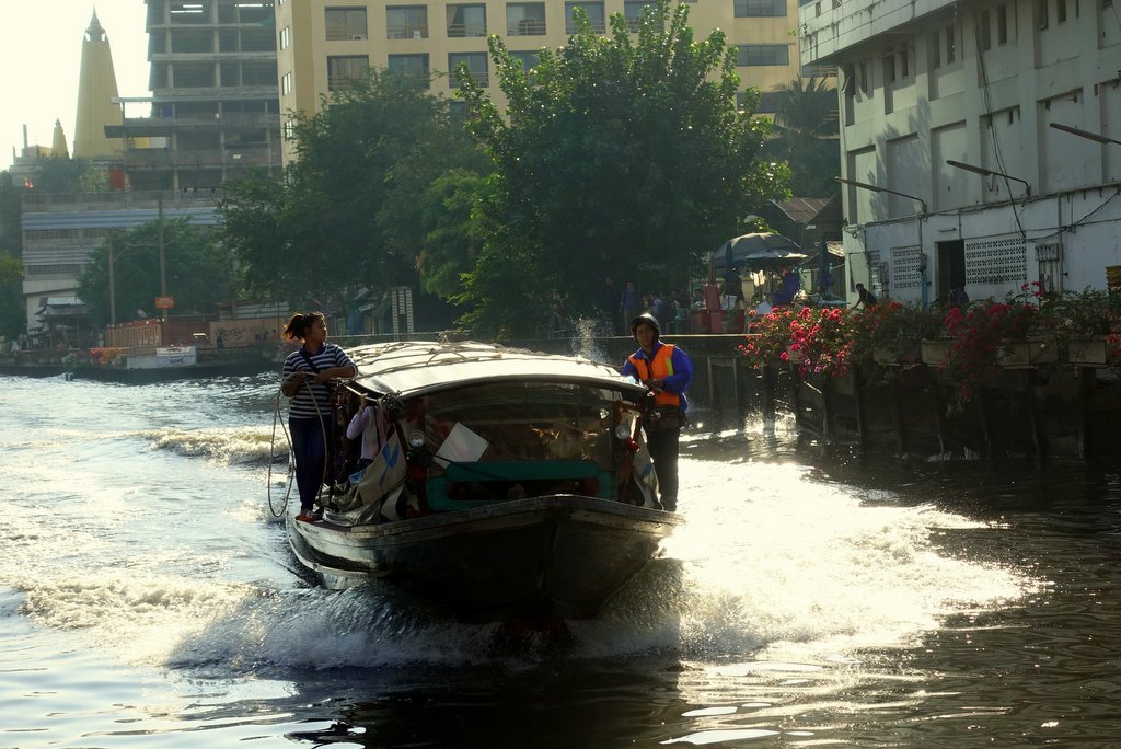24 Вдоль самого главного канал ходит нечто на подобие речного трамвая. Это катера чуть поменьше тех, что курсируют по реке. Среди их пассажиров намного меньше туристов, и намного больше обыкновенных тайцев.