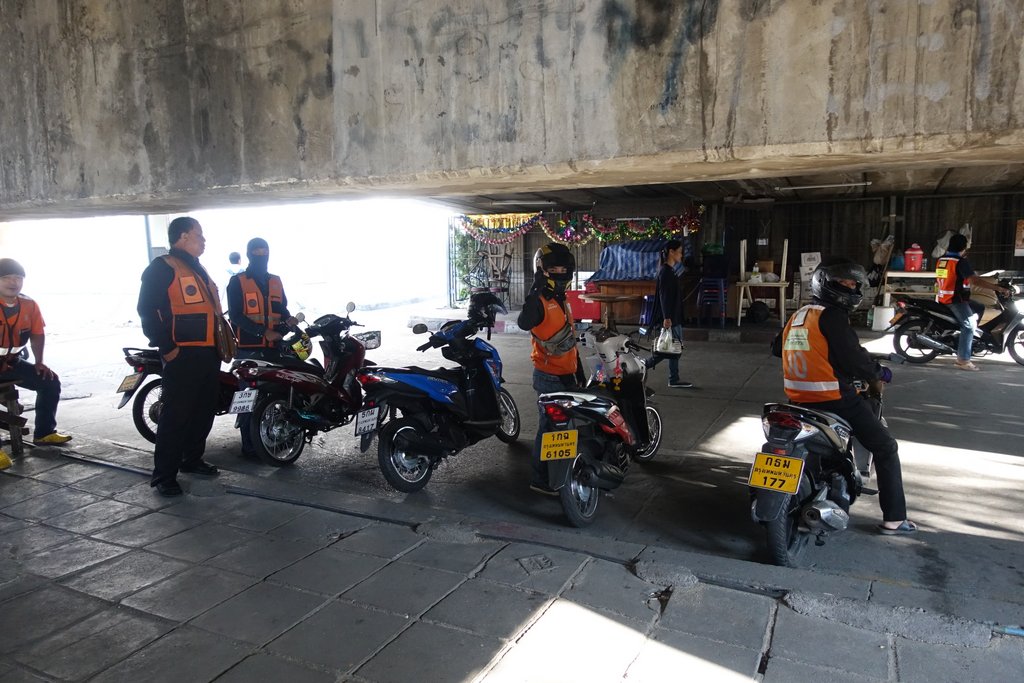 7 Последний отчаянный вариант наземного транспорта - мото-такси. Это мопеды, готовые подвезти пассажира до ближайшего транспортного узла. За какие-то 10-20 бат (чуть больше 25-50 центов) они провезут вас до нужного перекрёстка неподалёку. Осторожно! Эти твари умеют просачиваться через пробки, что тоже может вызвать у пассажира острые ощущения - особенно пока приходится держаться за тайца-камикадзе перед вами. Он то в шлеме, а вы - нет!