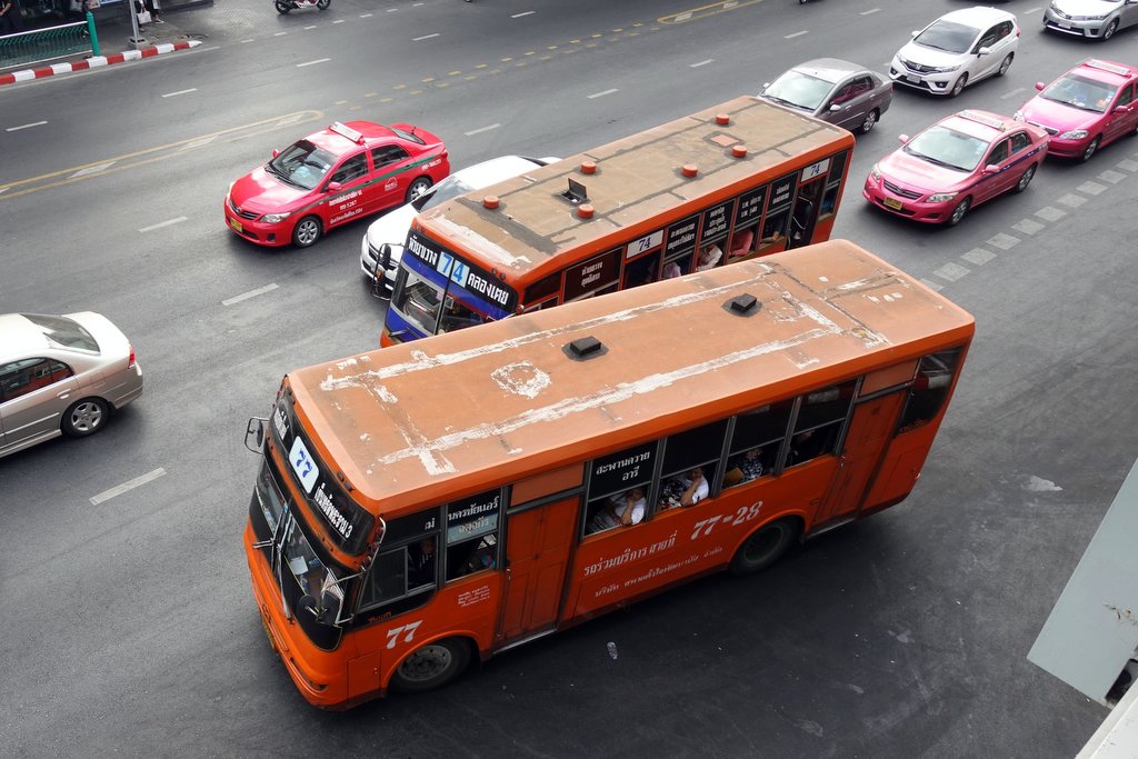 9 Из общественного транспорта в Бангкоке есть автобусы, которые я упоминаю только для полноты картины. Ведь они так же как и такси стоят в пробках, а такси и так уже дешёвые! На автобусах я ни разу не ездил. Многие из них ходят битком набитыми.