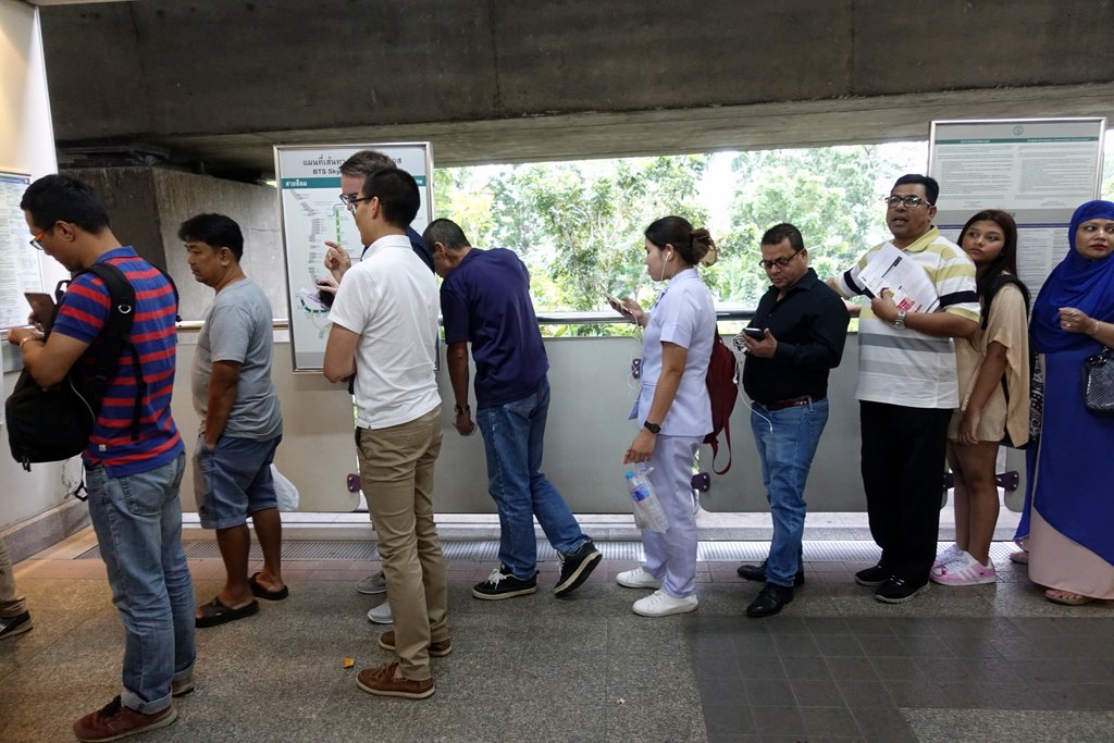 15 Метро крайне популярно. Это сравнительно дорогой по местным меркам вид транспорта, и тайцы стараются одеваться туда соответственно. Если девушка чувствует, что выглядит сегодня не очень, то она постесняется ехать в метро в таком виде. А то ведь мало что остальные подумают! В час пик каждый состав испускает толпы народу на главных остановках в центре.