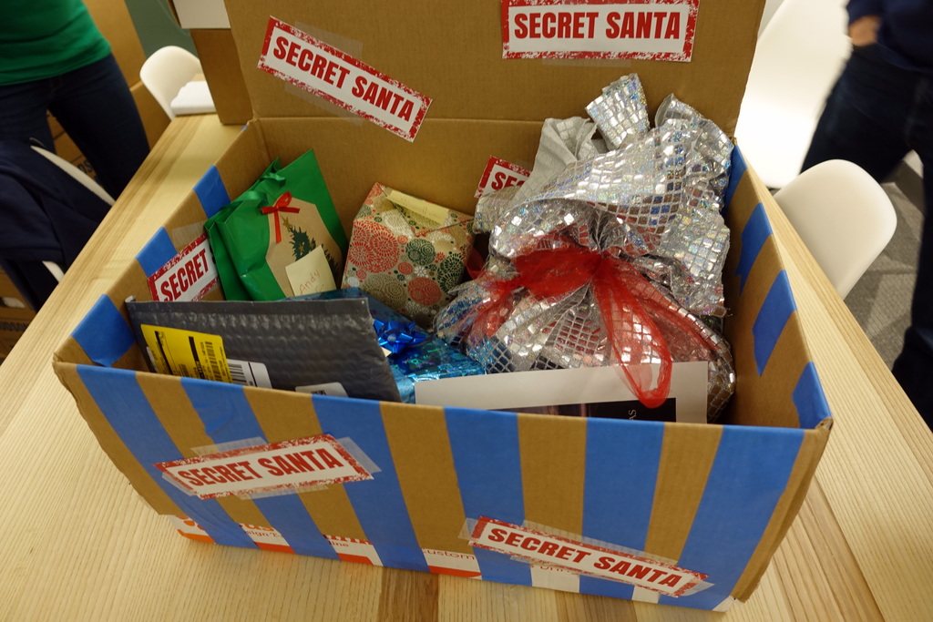37. 17:45. А пока, у нас "Секретный Санта". Посмотрите какую красивую коробку соорудили мои товарищи по команде! Пока я бегал за кофе я незаметно подкинул туда свой подарок, так чтоб никто не заметил.