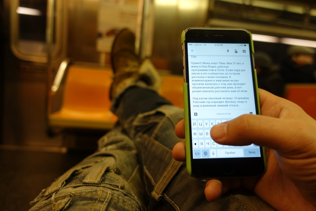 Привет! Меня зовут Лёва. Мне 37 лет, я живу в Нью Йорке, и работаю программистом в Гугле. Я уже пару раз описывал свои дни, но то были рассказы о моих поездках. В комментариях к ним, меня не раз просили написать о том, как проходит обыкновенный рабочий день. И вот, решил наконец рассказать вам об этом.