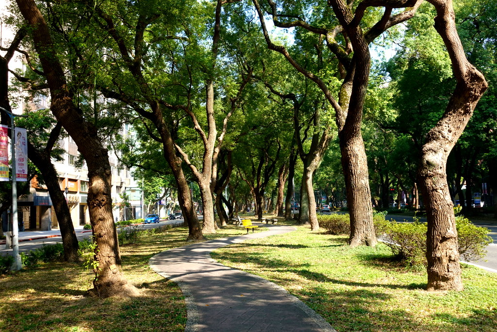 27. Некоторые из главных улиц Тайбэя - красивые зелёные бульвары. Здесь много деревьев, дорожки и лавочки. Приятно прогуливаться, и отдыхать.