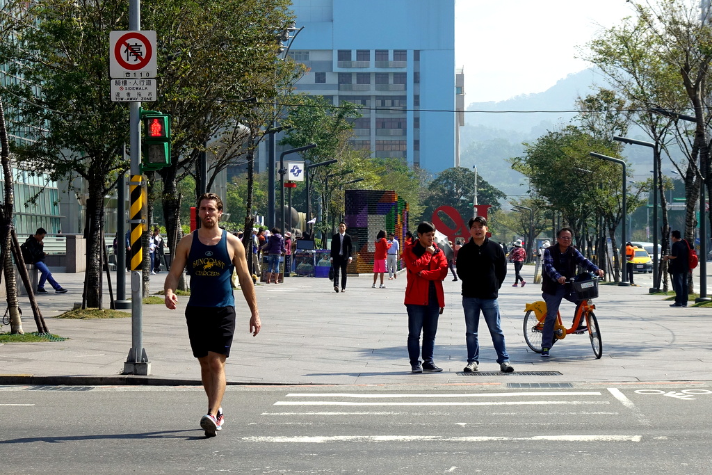 А ещё, интересно, что сейчас в тайваньской столице почти 20 градусов по Цельсию, но все местные одеваются, как будто стоит чуть ли не нулевая погода. Посмотрите на разницу между одеждой этого белого мужика, и всех остальных!