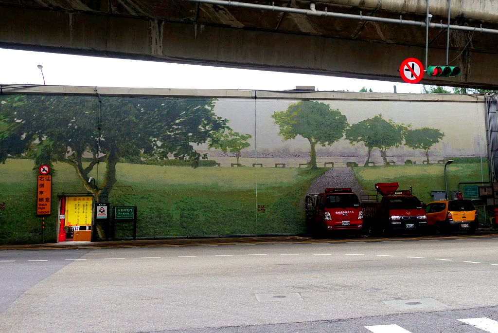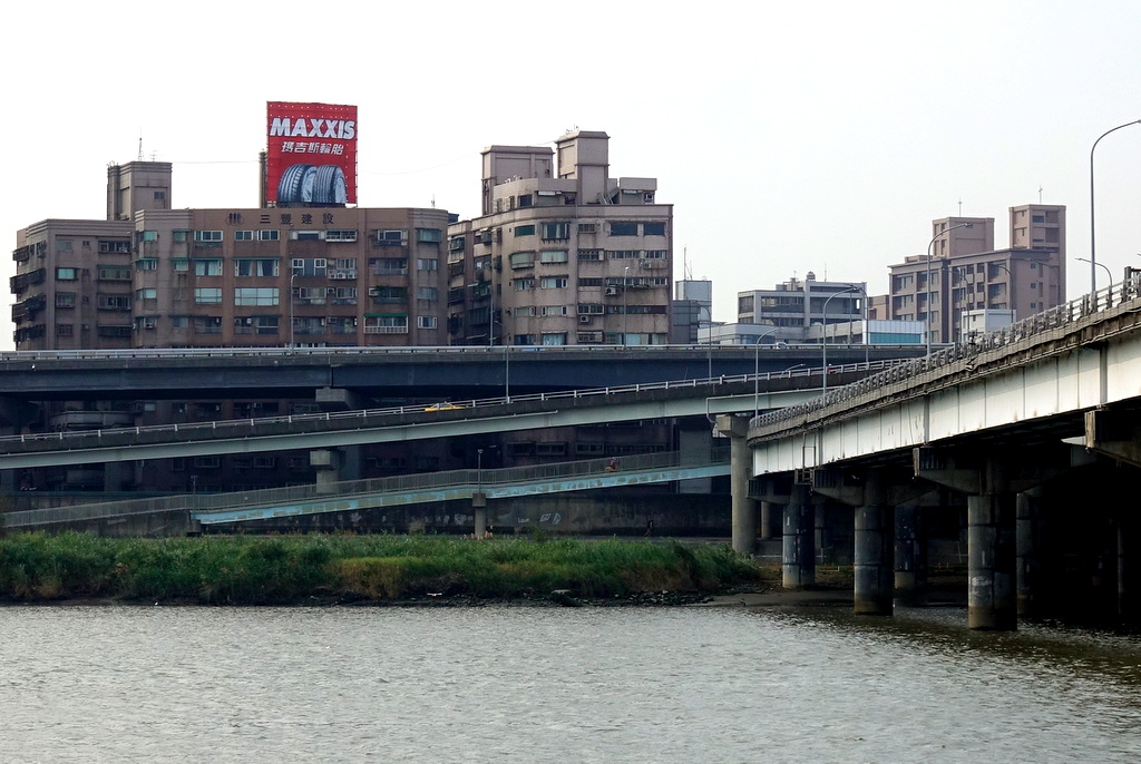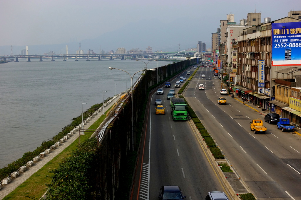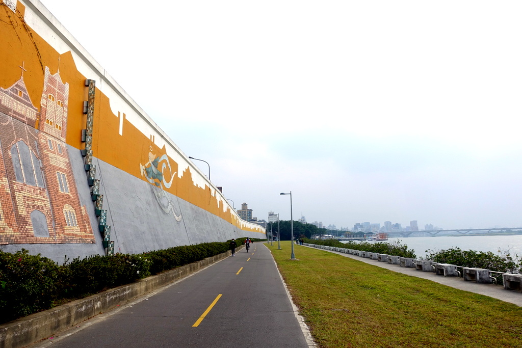 13. Вдоль набережной реки, которая отделяет центр Тайбэя от новых районов, стоит высокая стена.