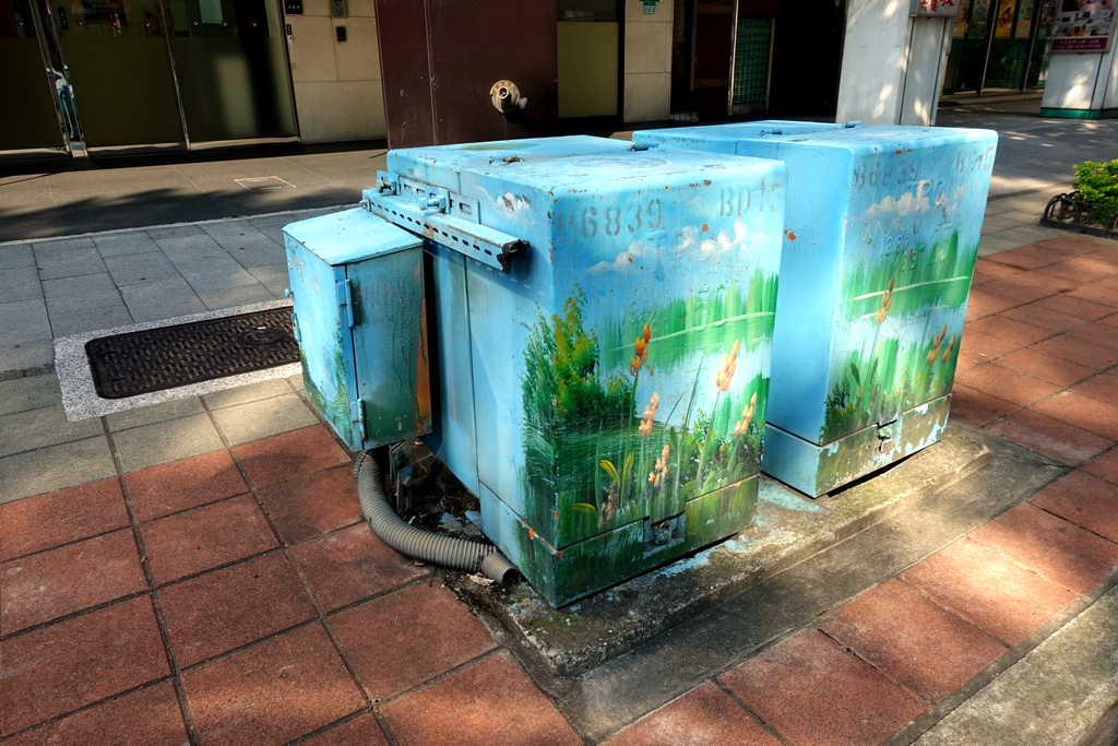 23. В Тайбэе трансформаторные коробки раскрашивают. Зачем просто ставить железные ящики посреди улицы, если можно их сделать чуток "покрасивше"?