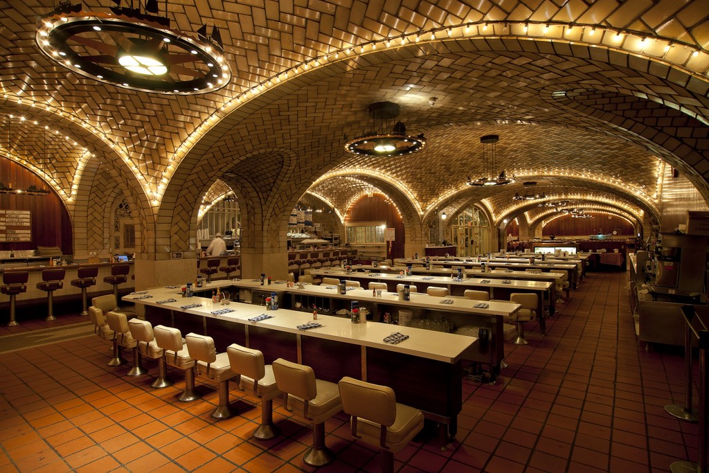 Не менее интересен подземный уровень Гранд Сентрал. Его красивые своды напоминают погреба замков Старого Света. В одном из них находится бар "Устрица", старейшее заведение на вокзале, открытое в том же 1913 году!
