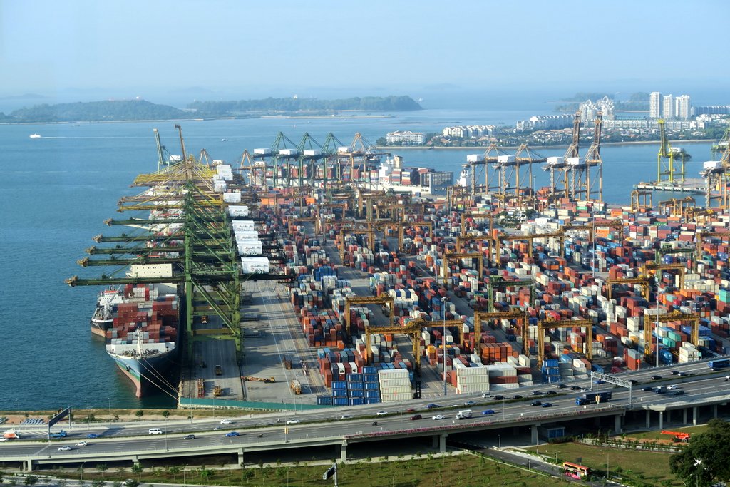 С другой стороны - грузовой порт, один из самых загруженных в мире.