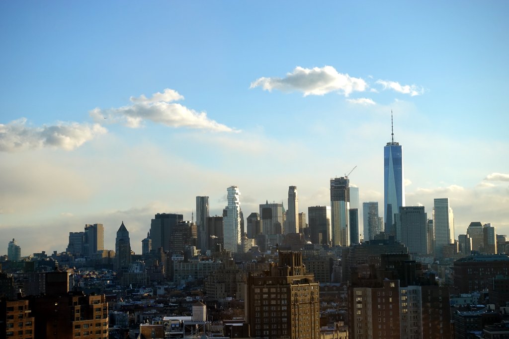 Ну а виды у нас есть и на юг, где находится даунтаун и финансовый центр - здесь доминирует небоскрёб One World Trade Center, построенный на замену башен-близнецов.
