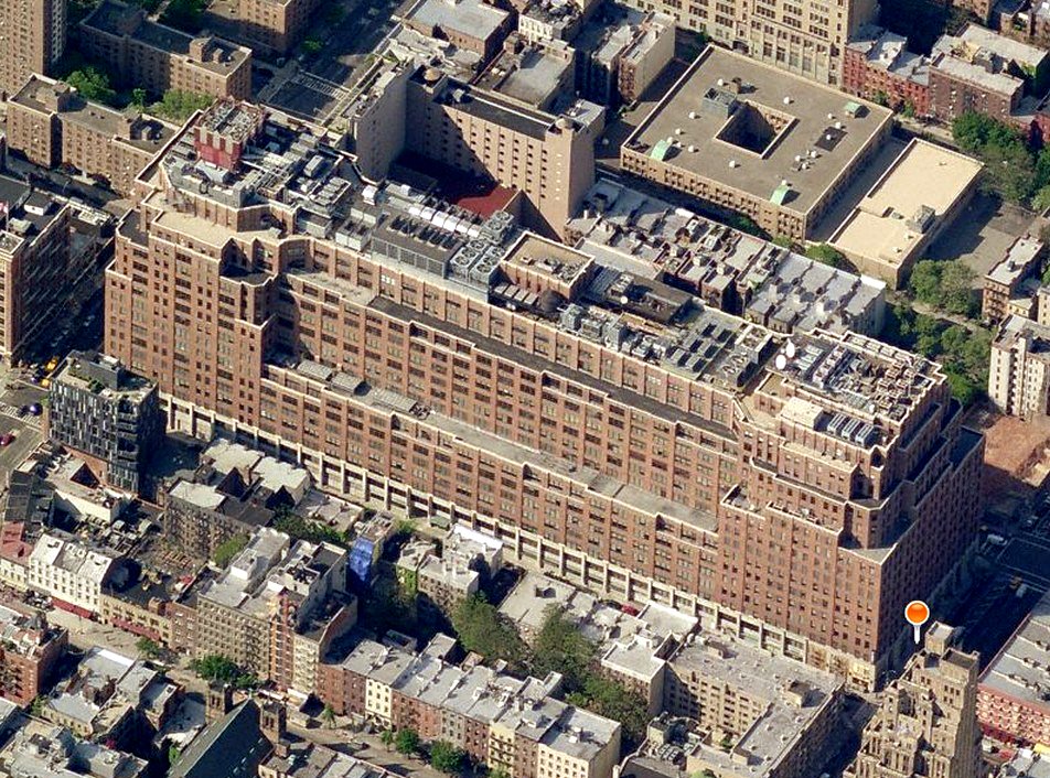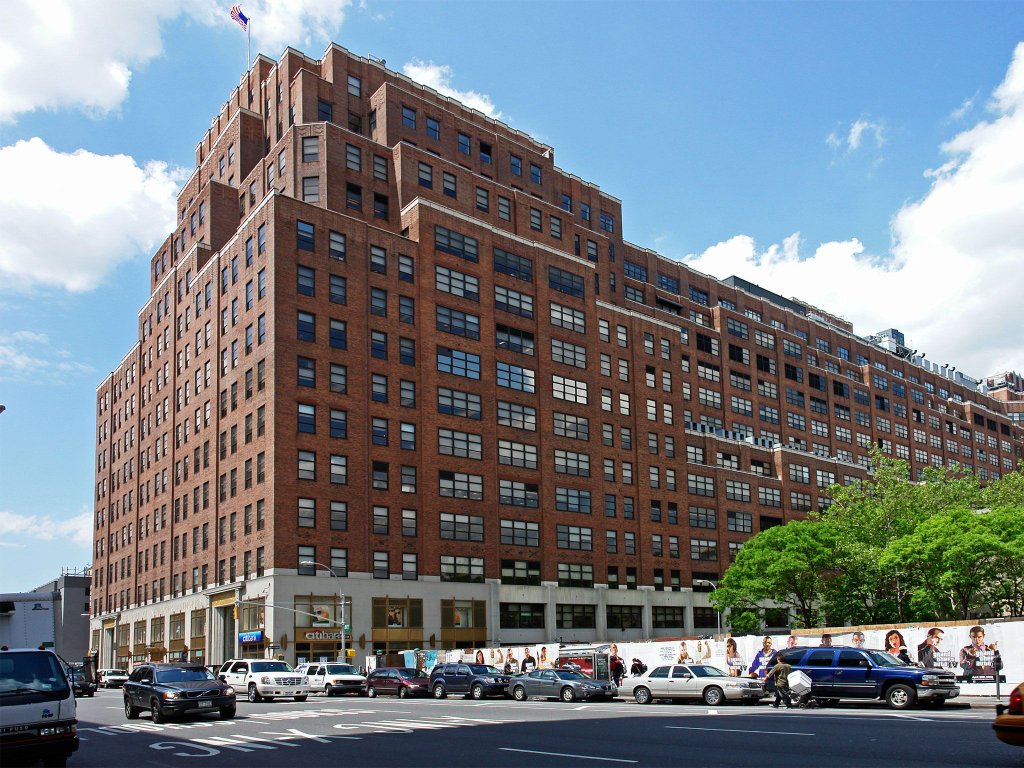 Здание одно из самых больших в Манхэттене, занимает целый квартал. Его главная фишка - огромное количество террас, за счёт сужения этажей после седьмого. Это хорошо видно здесь:
