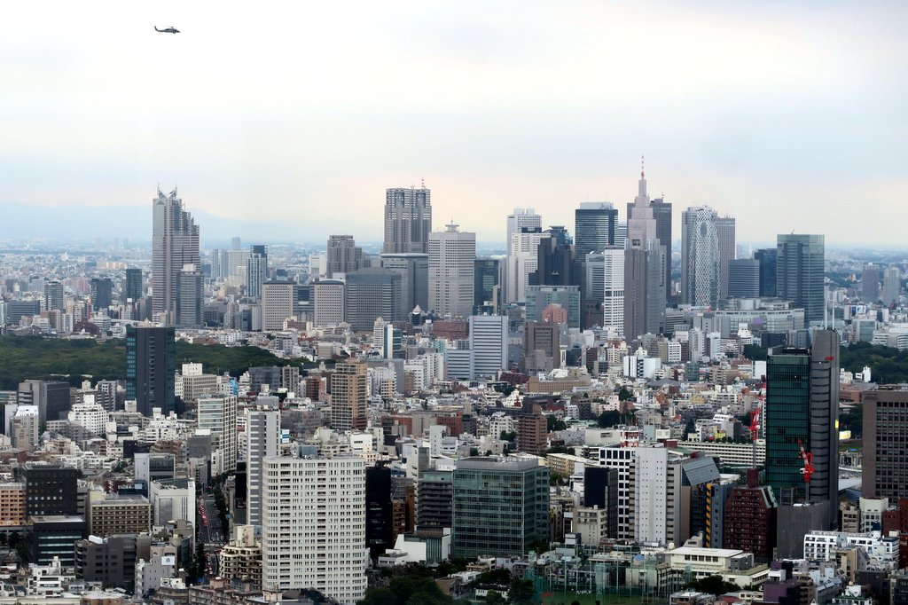 На северо-западе видны небоскрёбы Синдзюку: