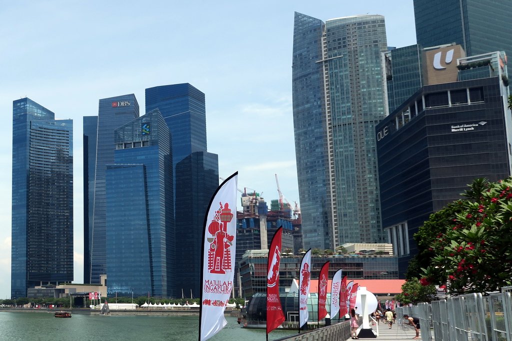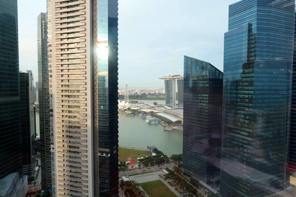 Работал здесь неделю по дороге в Папуасию. Офис в одной из башен в левой части фото:Отсюда прекрасный вид на залив Марина Бэй.