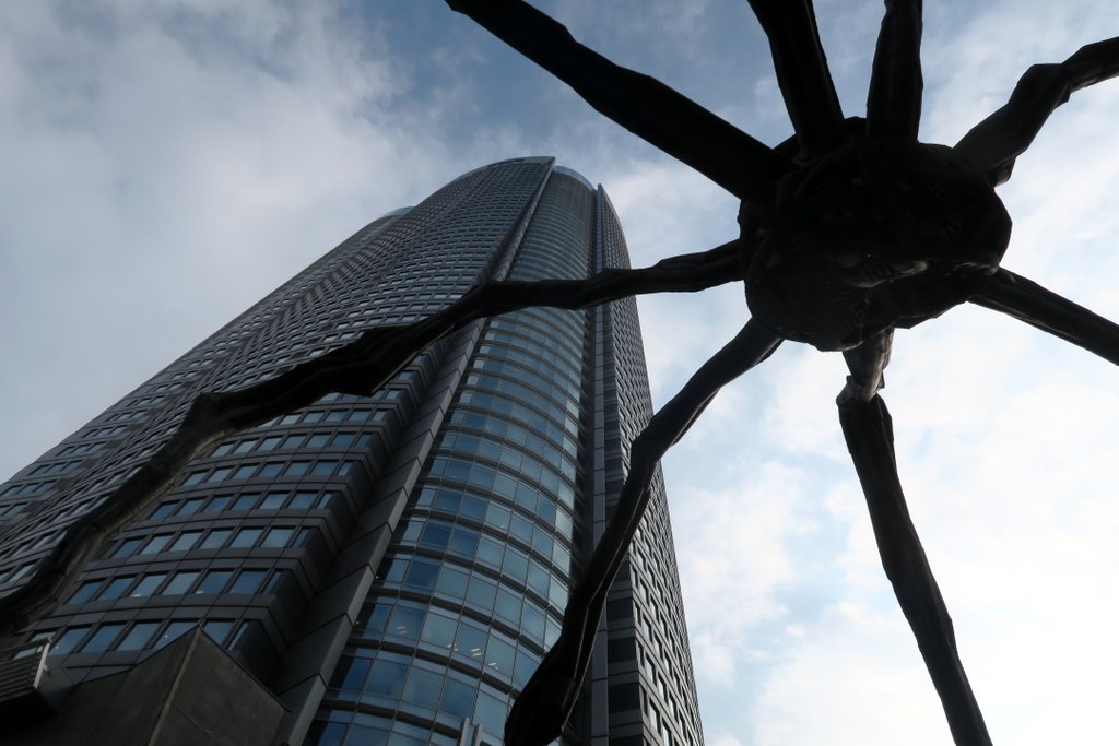 Главный небоскрёб комплекса Mori Tower. 54-этажная башня возвышается над всеми зданиями в окрестности, предоставляя отличный вид на 180 градусов вокруг. Перед входом стоит одна из серии скульптур огромных пауков, работы Луизы Буржуа.