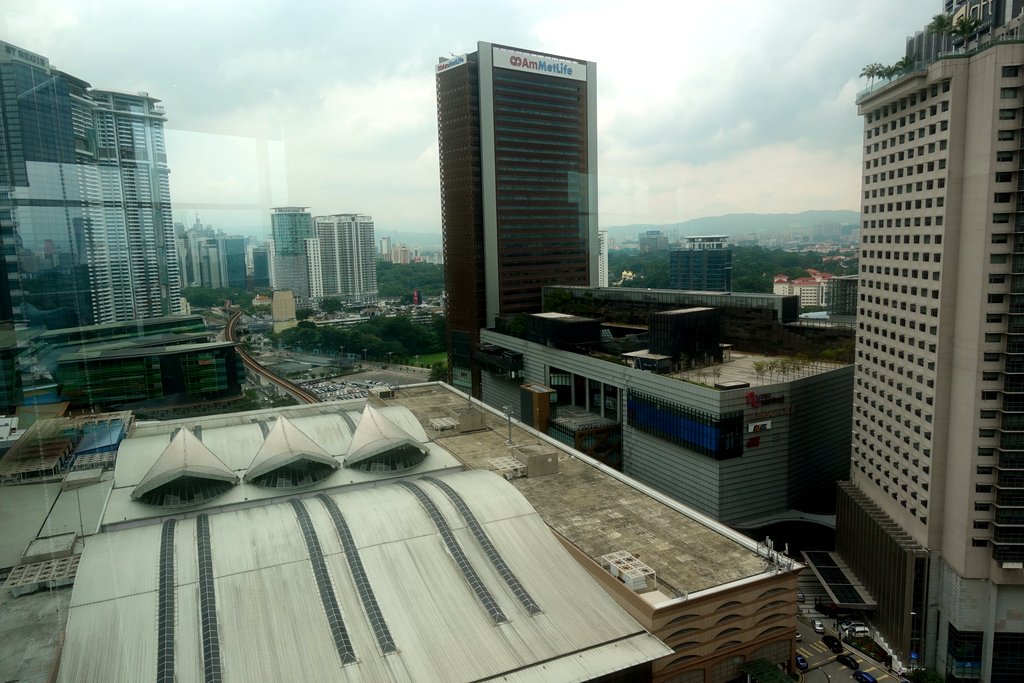 Лучше всего отсюда смотрится крыша самого вокзала. Ну ещё несколько соседних небоскрёбов видно. К сожалению башни-близнецы Петронас из этого небольшого офиса не видны (хотя может это мне опять со смогом не повезло).