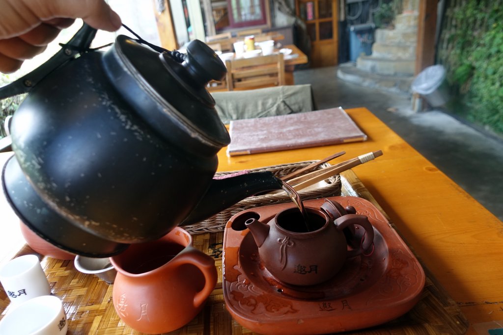 Горячую воду потом сливают в горшочек (на заглавной фотографии он в левом углу подноса). Он служит эдакой чайной мусоркой.