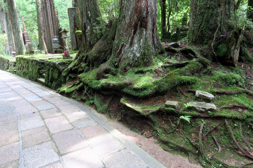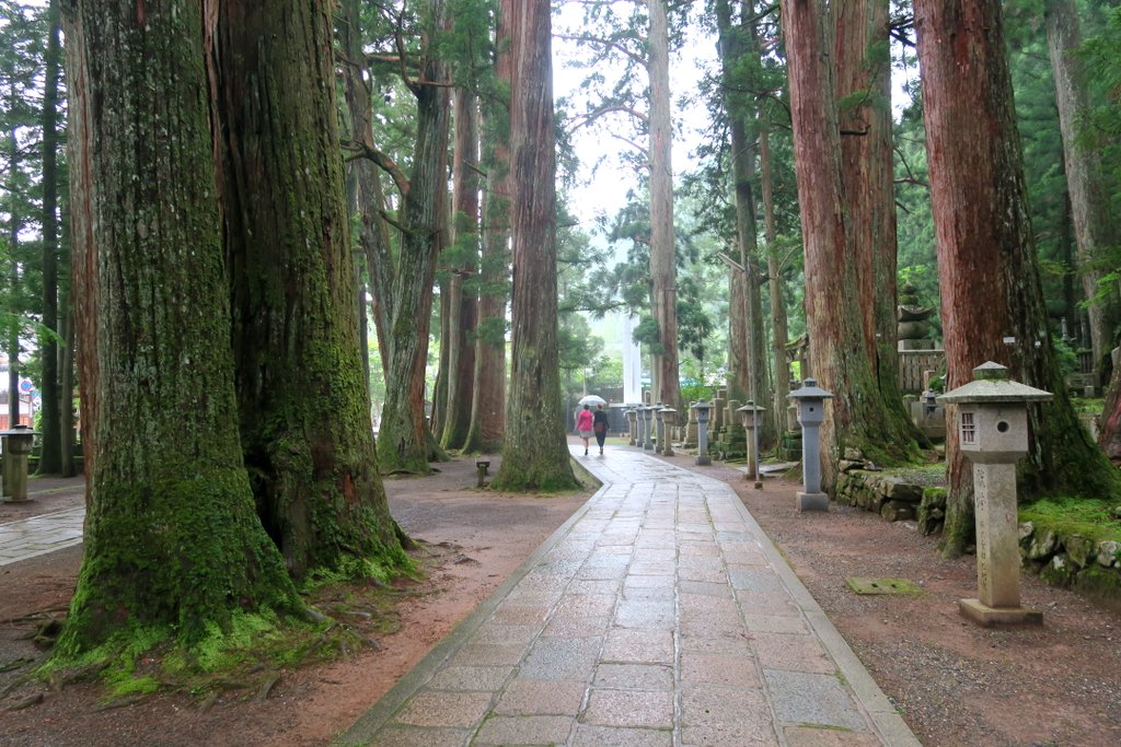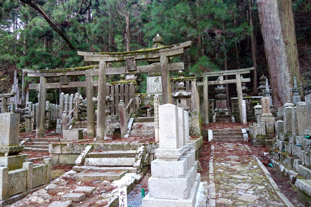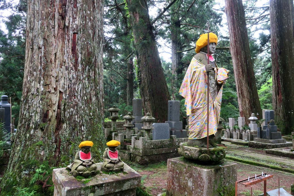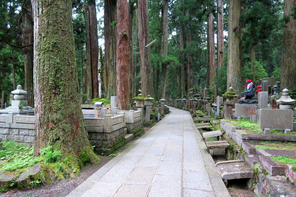 С годами вокруг мавзолея, в лесу из огромных старых кедров, выросло кладбище. Кладбище и мавзолей внутри него называют Окуно-ин. Быть похороненным здесь, на священной горе Коя-сан мечтает каждый правоверный буддист. Короче удовольствие это не из дешёвых.