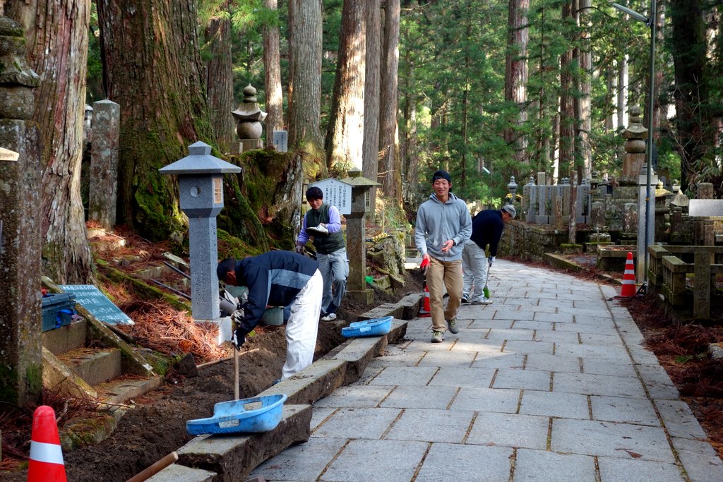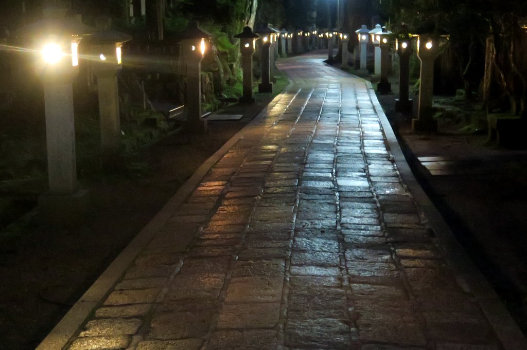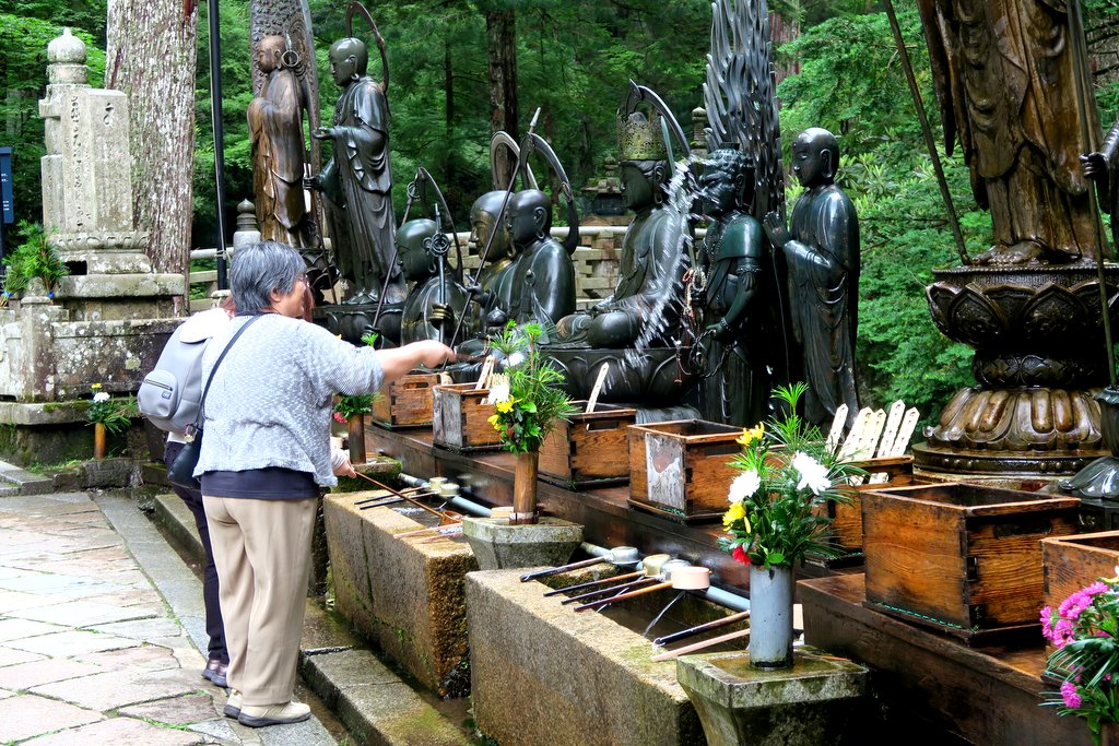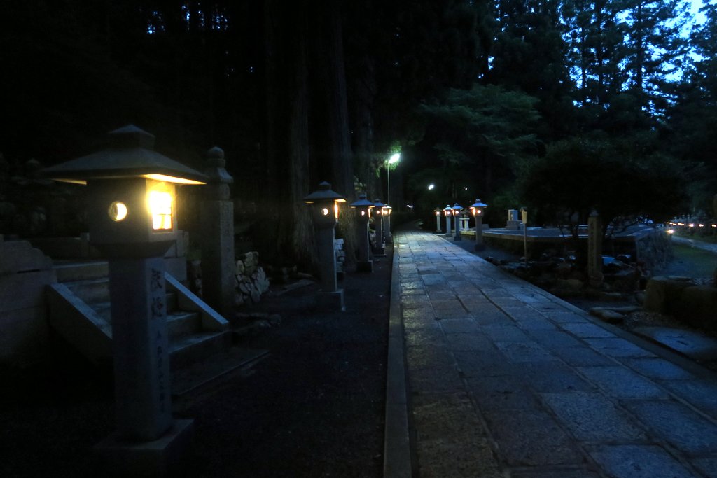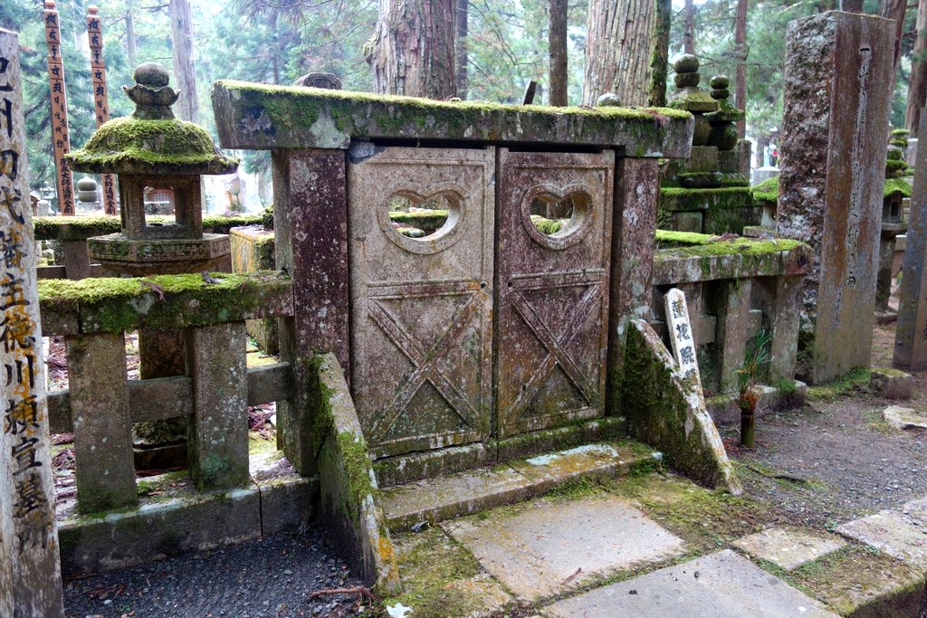 С годами вокруг мавзолея, в лесу из огромных старых кедров, выросло кладбище. Кладбище и мавзолей внутри него называют Окуно-ин. Быть похороненным здесь, на священной горе Коя-сан мечтает каждый правоверный буддист. Короче удовольствие это не из дешёвых.
