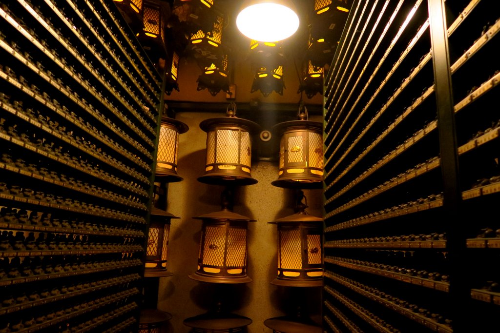 57 А в подвале кроме ламп стоят огромные стеллажи, с фигурками маленьких Будд. Или это Кукай?.. Так сходу и не поймёшь.