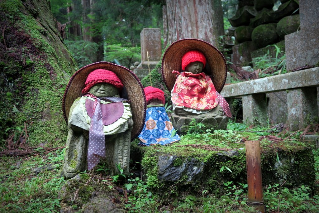 37 Другим фигуркам вяжут тёплые шапочки - это ещё одна традиция среди японцев, весьма печальная. Родители умерших детей вяжут такие шапочки небольшим статуям, чтоб те защищали души покойных от злых духов в загробном мире.