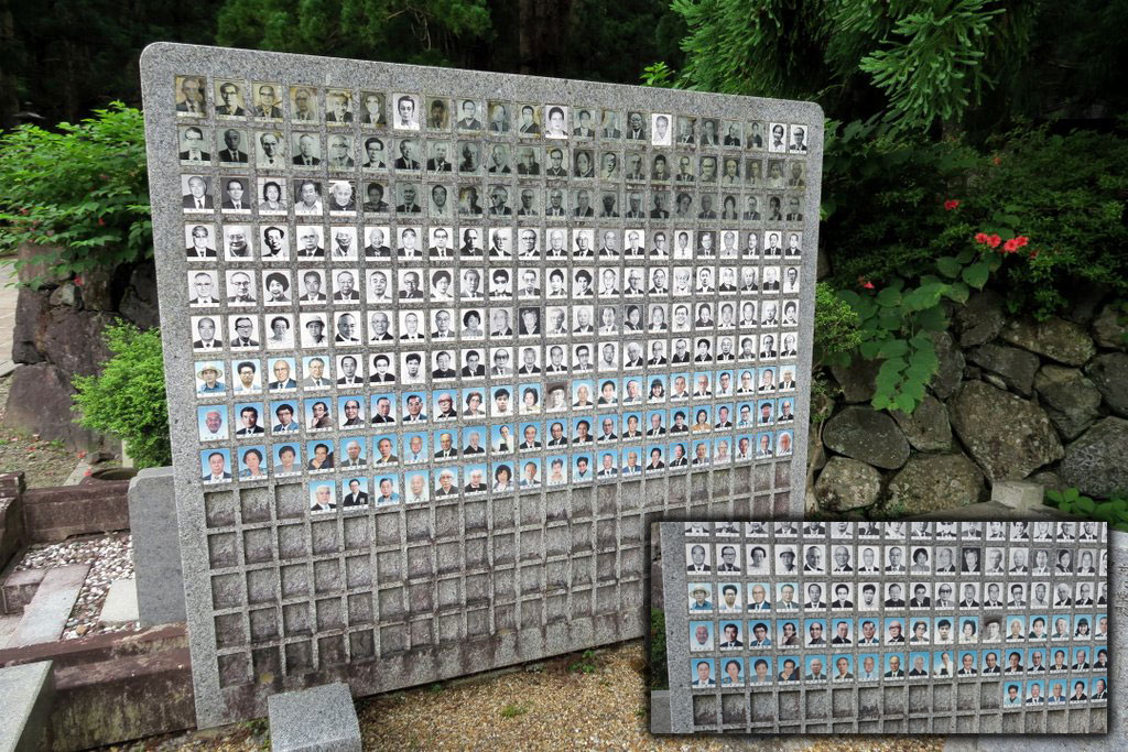 44 А вот здесь установили огромную гранитную плиту, куда добавляют фотографии умерших. За три года между моими двумя посещениями Коя-сан, сюда добавилось девять портретов.