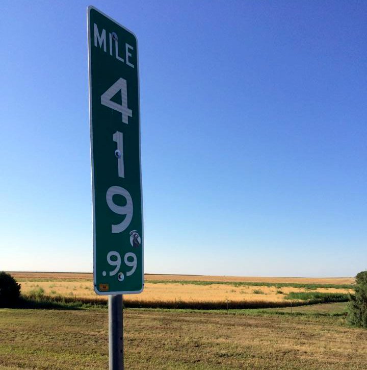 420 миль это около 675км, дистанция внушительная, и знаков с таким значением в стране не так много (напомню, что мили обнуляются на границах штатов). Шоссе I-70, идущее в Колорадо на протяжении 460 миль представляло редкую возможность для любителей травки.