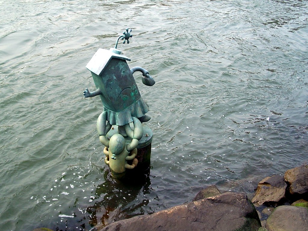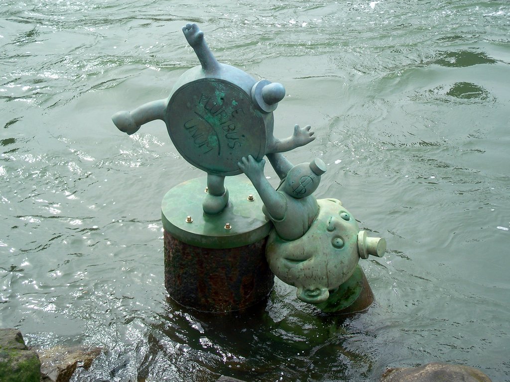 Фигурки в воде явно были созданы Оттернессом ещё до того, как он нашёл свой сегодняшний стиль. Это хорошо видно по "нечёткости" одноцентовой монеты, представляющей в этой работе "деньги". Сравните предыдущую фотографию со следующей: