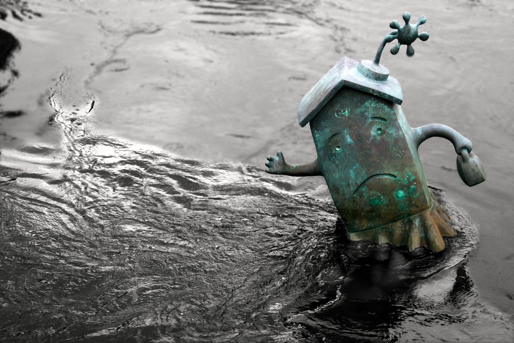 А ещё одна крутая штука заключается в том, что у двух из этих работ важные элементы уходят под воду во время прилива. Вот рак с предыдущей фотографии исчезает под водой на следующей, и уже непонятно, почему недвижимость столь недовольно, и что тянет её под воду.
