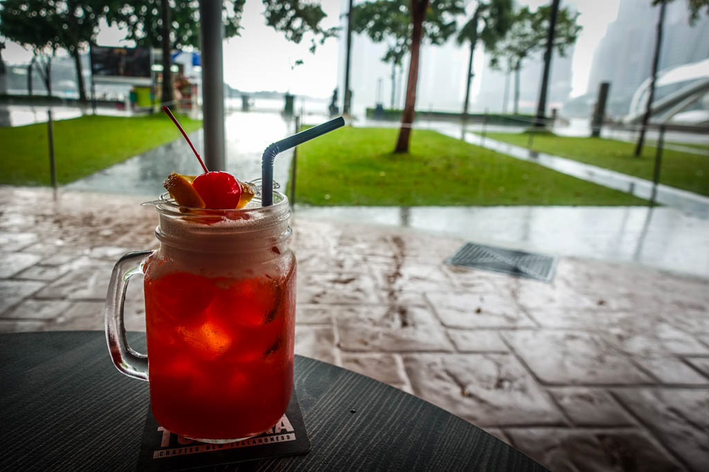 14. К счастью, такие дожди длятся недолго - максимум час-полтора, и всё стихло. А это время можно прекрасно провести в каком-нибудь баре под навесом, с классическим местным коктейлем - Сингапурским Слингом. Он конечно не такой вкусный, как Московский Мул, но на время дождя очень даже сойдёт.