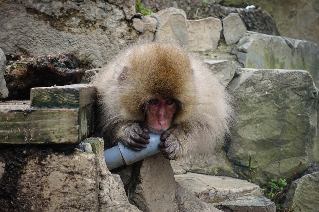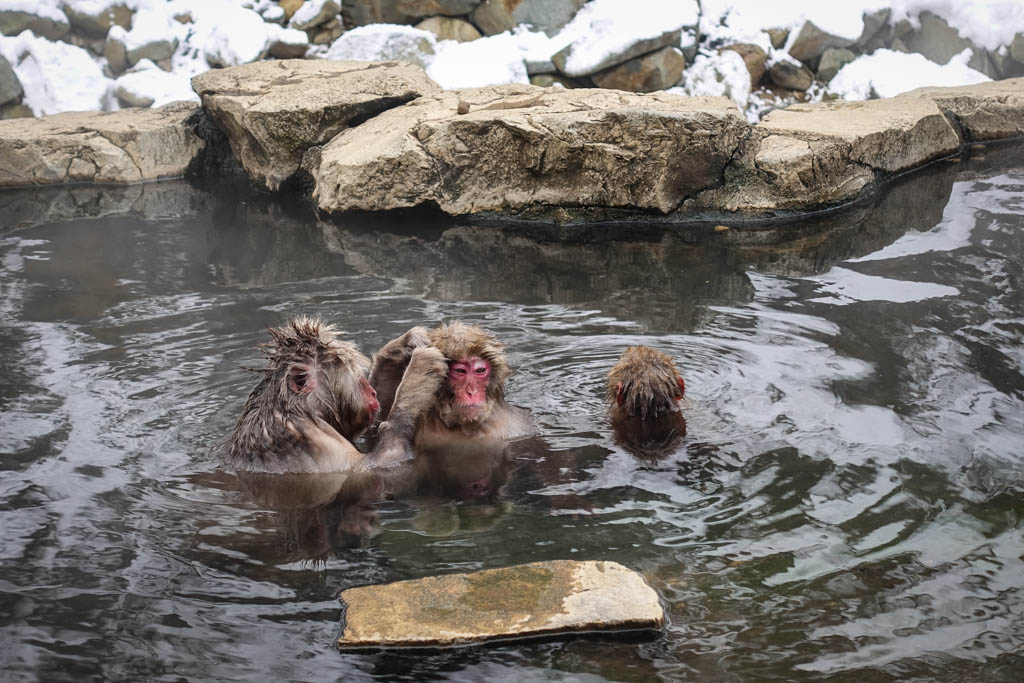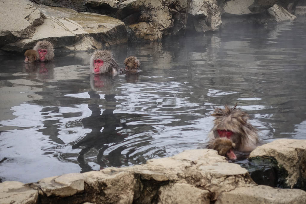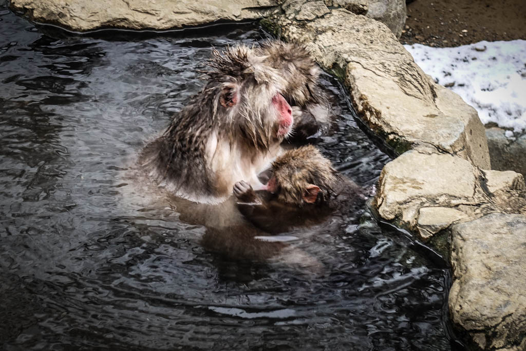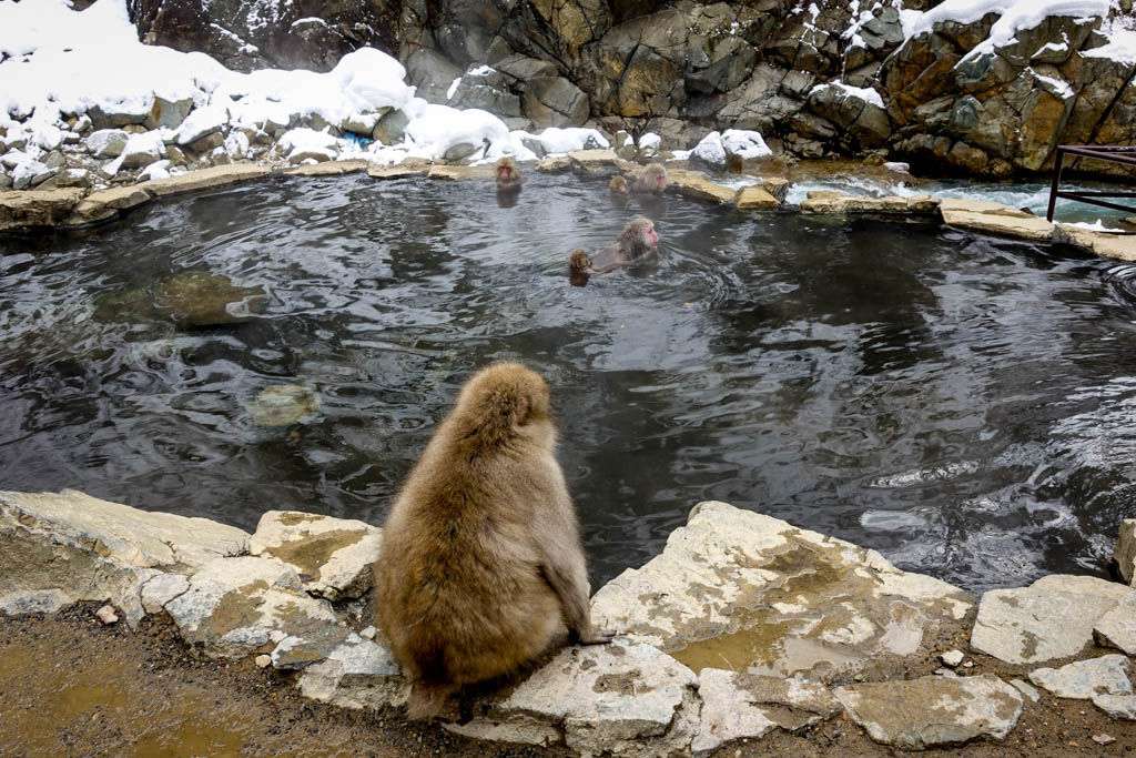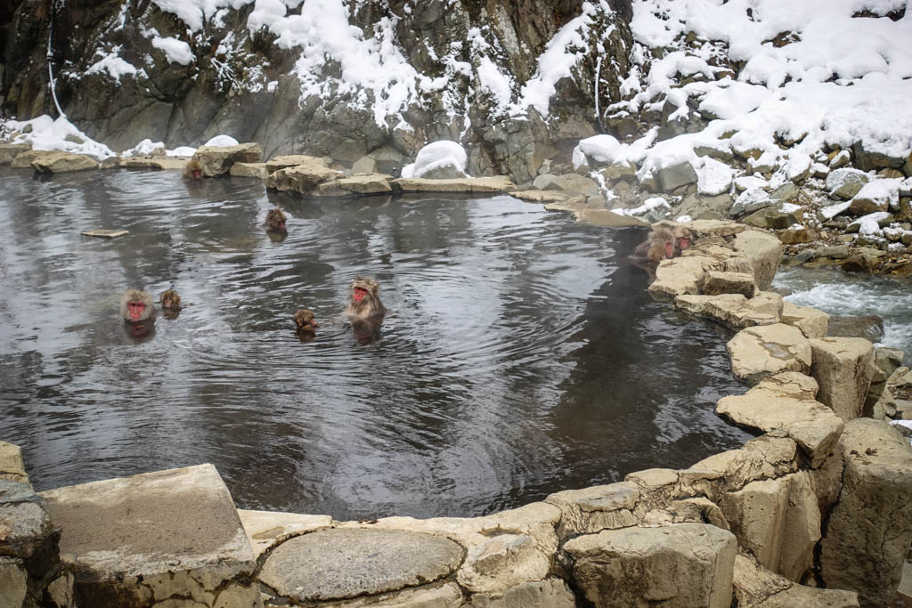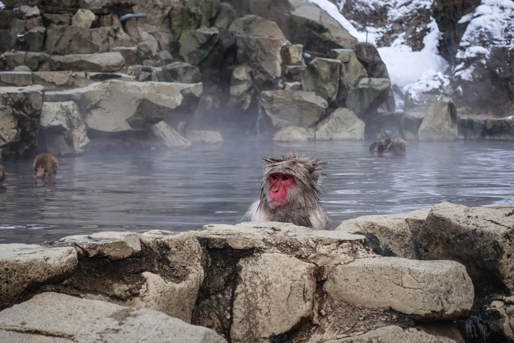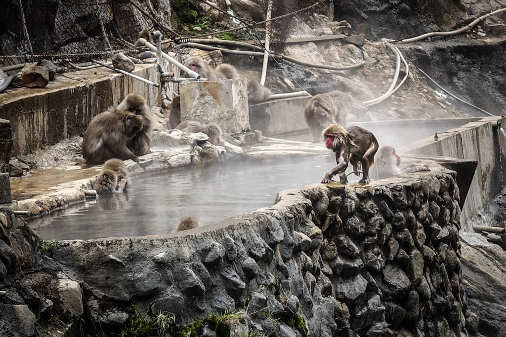 10. Парк Дзигокудани - единственное место, где обезьяны так себя ведут, в природе им онсены не попадаются. Парк никак не огорожен, и обезьяны свободно могут покидать его территорию. Но зимой сотрудники парка предлагают им корм, который трудно найти в заснеженных горных лесах, так что они остаются зимовать здесь, и заодно приходят попариться в горячих источниках.