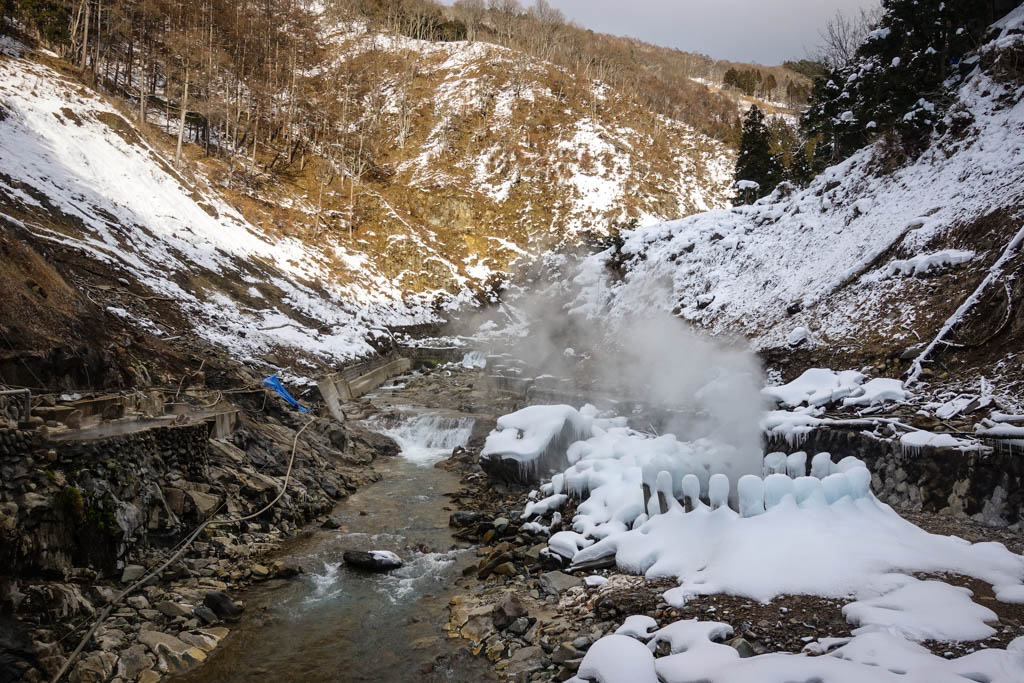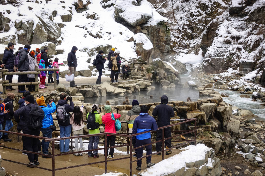 К счастью внизу, в деревне Сибу Онсен нас ждали горячие источники для людей! А на следующее утро выпал красивый свежий снег!