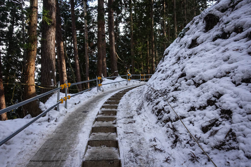 2. Дорога вверх и правда полностью покрыта утрамбованным снегом, тут немного скользко, так что лучше держаться за перила.