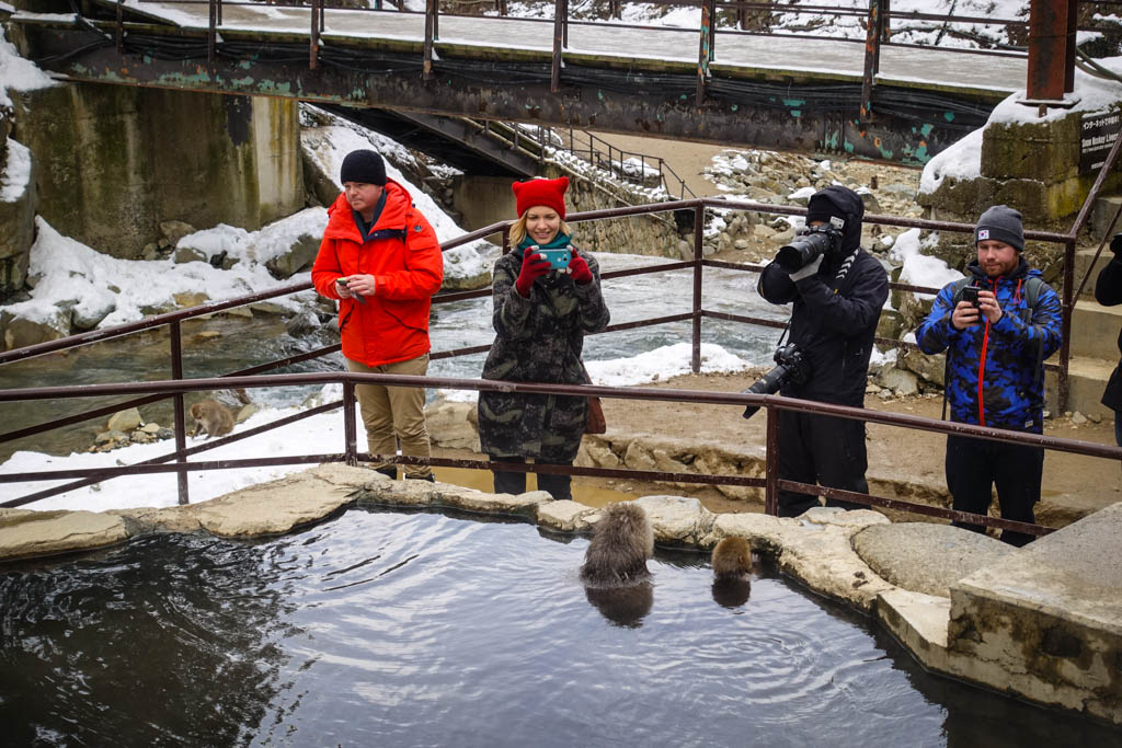 8. А вот и онсен с обезьянками! Рядом стоят невероятно умилённые туристы.