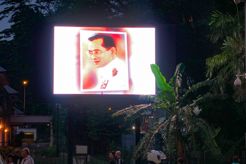 6. Проходил мимо посольства Тайланда в Сингапуре, а у них на огромном информационном дисплее почитают память покойного короля. Насколько я знаю, его до сих пор ещё не похоронили, хоть он скончался в октябре прошлого года.