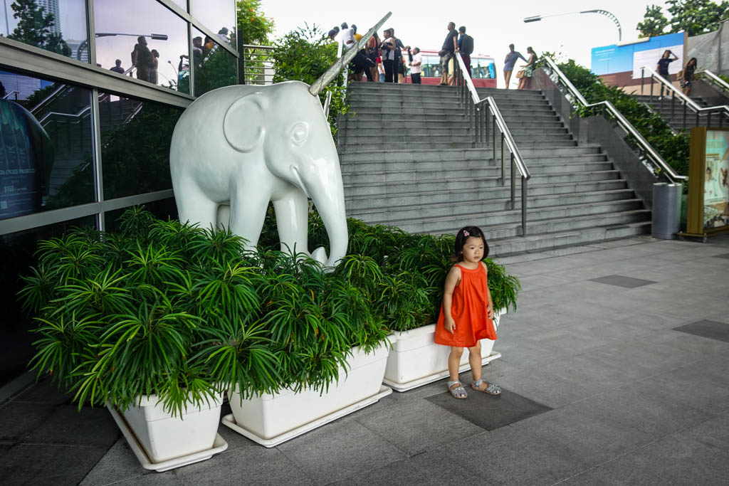 5. Гулял, смотрю, маленькая милая девочка фотографируется с фарфоровым слоном. Раньше прошёл бы мимо, а сейчас, знаю, что этот слон - часть акции Elephant Parade, которая началась на севере Тайланда в поддержку слонихи Моши, которая потеряла ногу.
