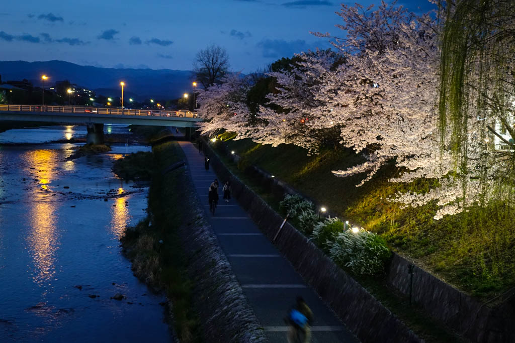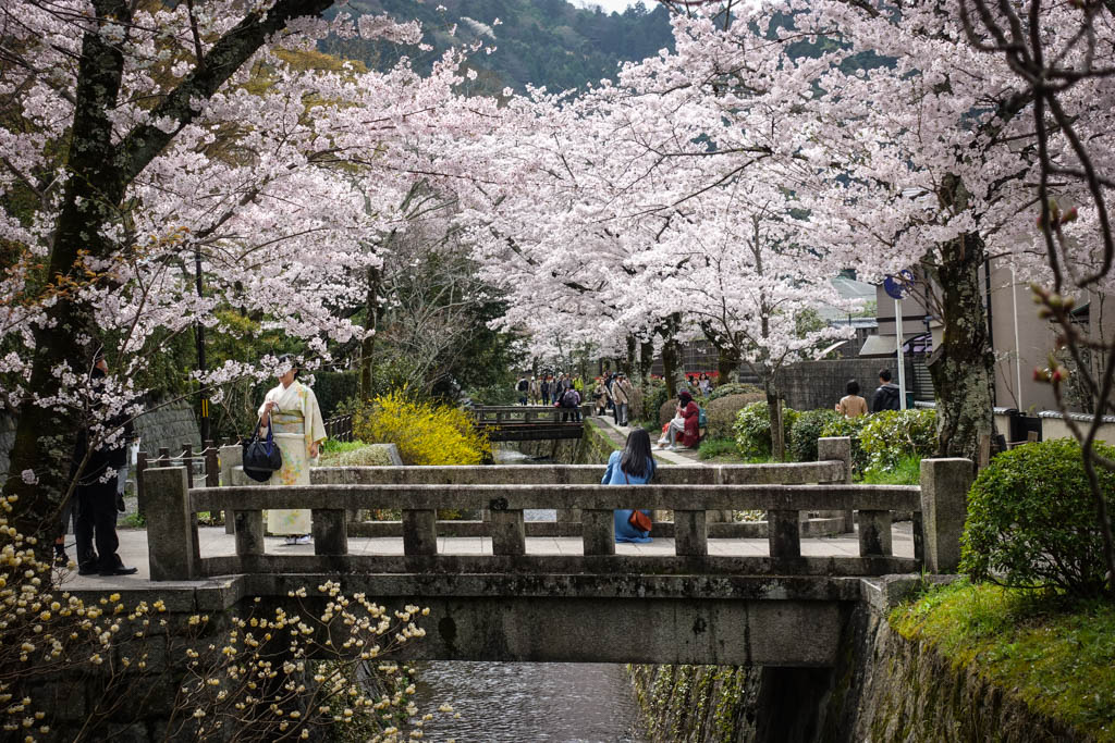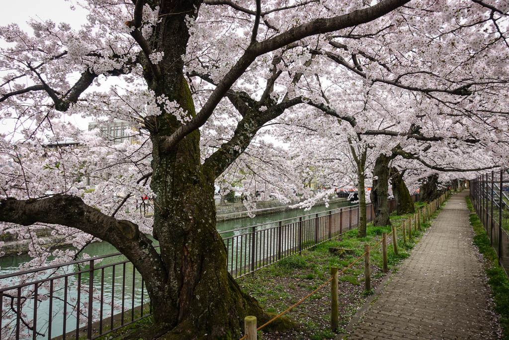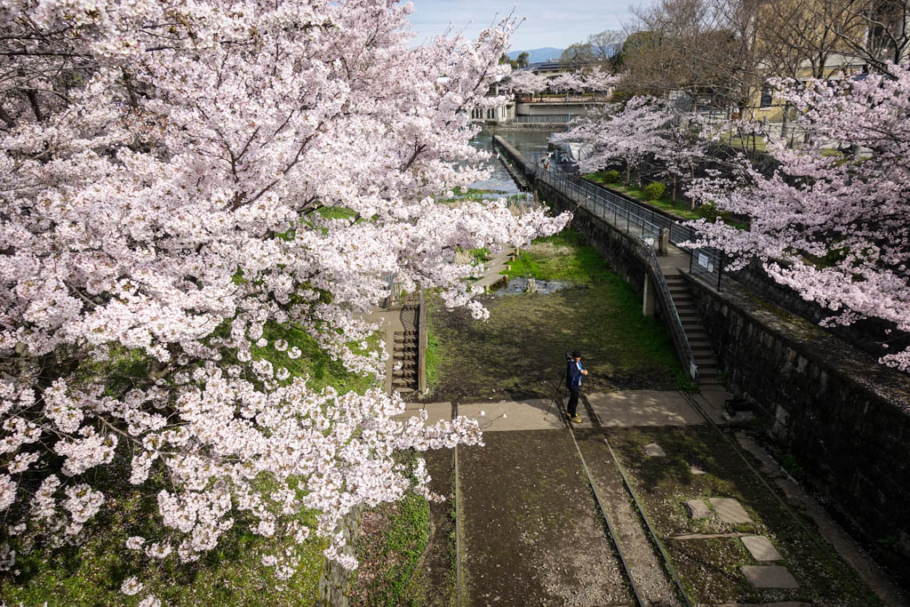 Я снова вернулся в Киото, и теперь то тут всё нормально с сакурой. Весь город сейчас в цвету. Просто из-за холодной весны это случилось на неделю позже, чем обычно, но к счастью, длина моего визита позволила мне всё же застать самый пик цветения.