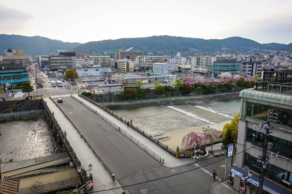 1. Когда я рассказываю о прелестях Киото, я всегда говорю, что в городе надо селиться как можно ближе к мосту Сандзё Охаси, который служил конечной точкой феодальной дороги Накасендо. В этот раз мне посчастливилось найти рьёкан с окнами выходящими прямо на этот мост!