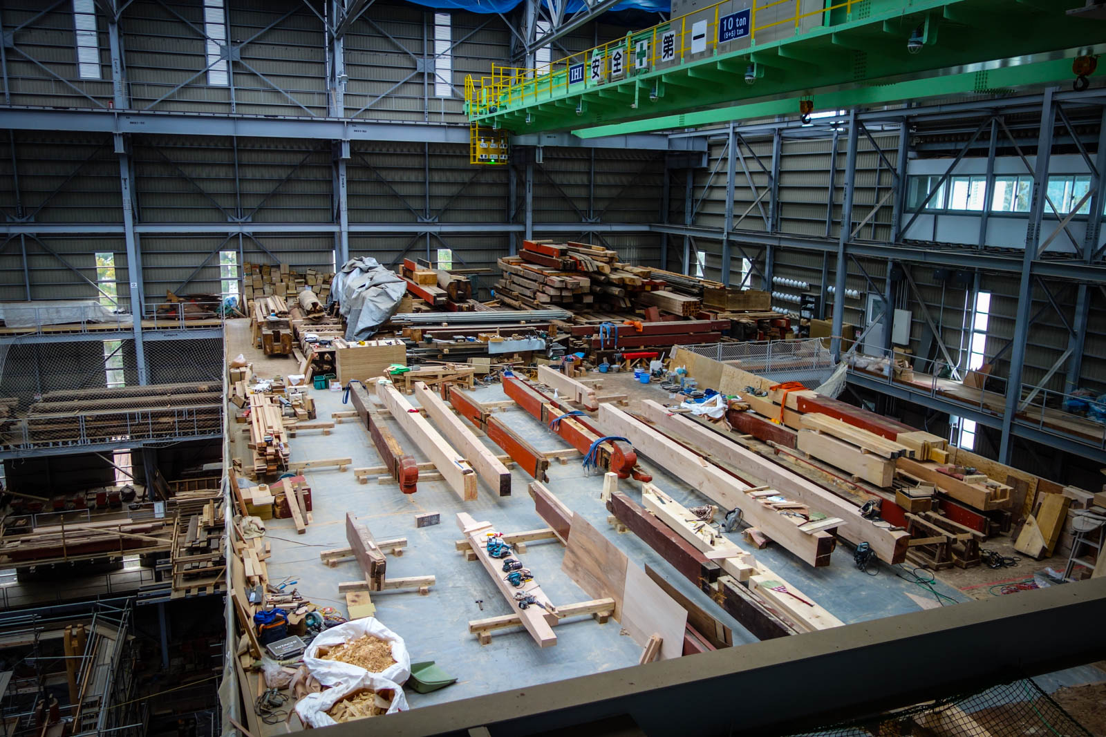 Всё это дерево раскладывается аккуратно по периметру ангара, где учёные проверяют каждую доску. Не прогнила ли она, не надо ли её заменить? На некоторые приходится делать рентгеновый снимок, чтоб понять, нет ли там внутренних дефектов.