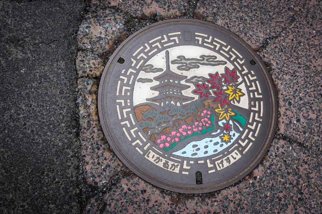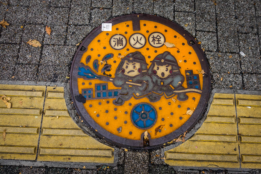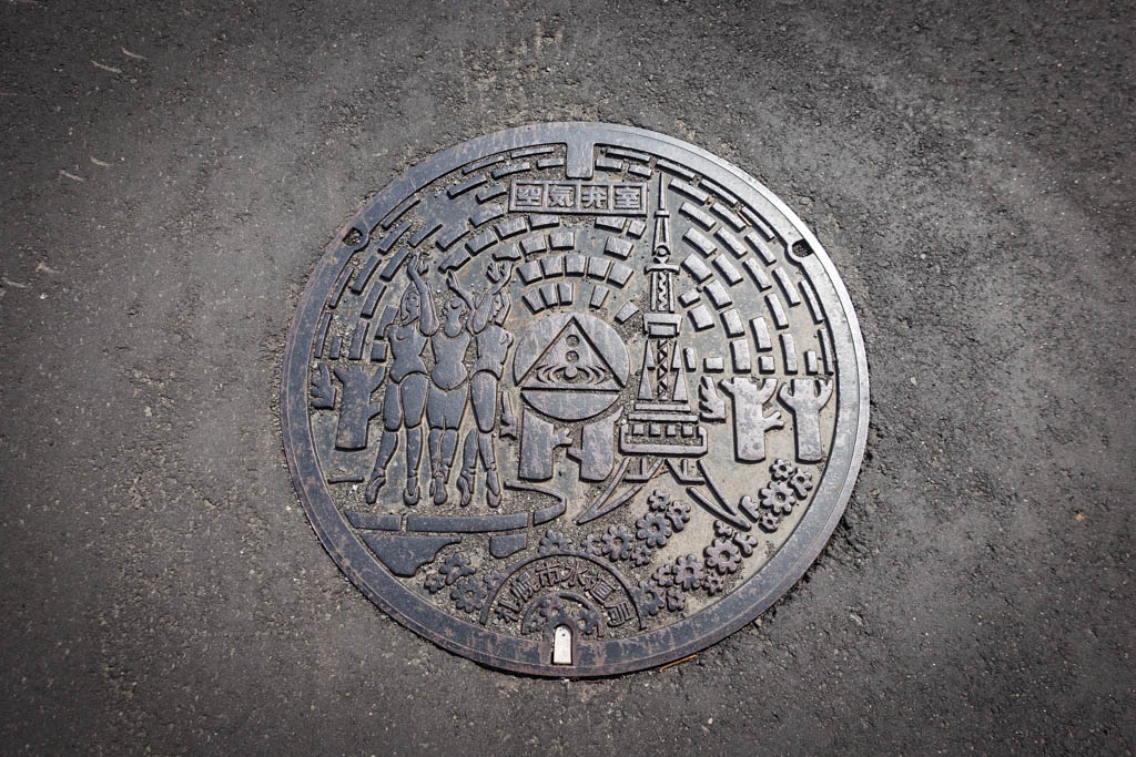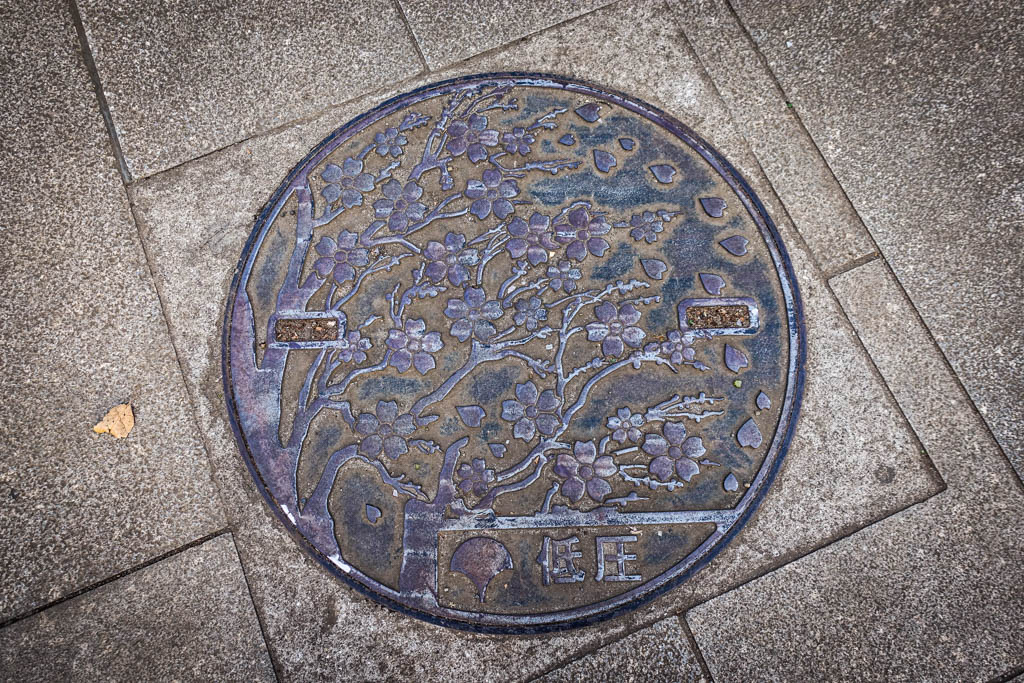 За эту поездку в Японию я успел значительно пополнить свою коллекцию крышек канализационных люков. Для тех, кто не знает, японцы с большим вниманием относятся к этой детали городского дизайна, и практически в каждом городке на люках будет не только городской символ, но часто, и какой-нибудь уникальный рисунок, включающий в себя главную местную достопримечательность.