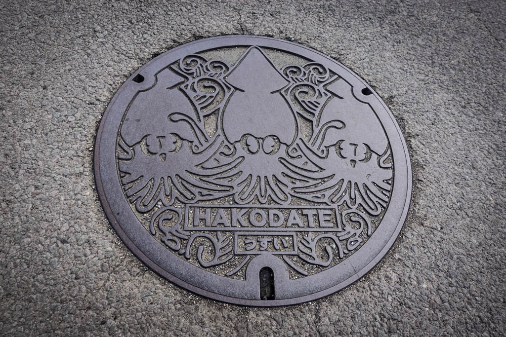16. Поехали на Хоккайдо! Вот люк из Хакодате, самого северного города Японии, куда ходит синкансэн. На нём изображены кальмары.