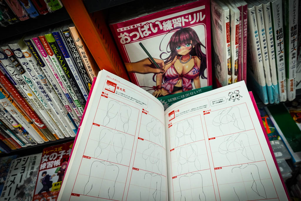Поэтому во всех эротических комиксах (и порно-фильмах) в Японии все рабочие моменты половых актов всячески скрывают. Кто пикселями, кто забеливает, кто просто не рисует. Зато они навёрстывают упущенное размером груди у своих героинь. Да, японцы, как и пелевинский герой, любят, когда большие сиськи. В шестиэтажном магазине хентая есть даже пособие для начинающего художника, которое научит любого рисовать невероятно одарённых природой девушек.