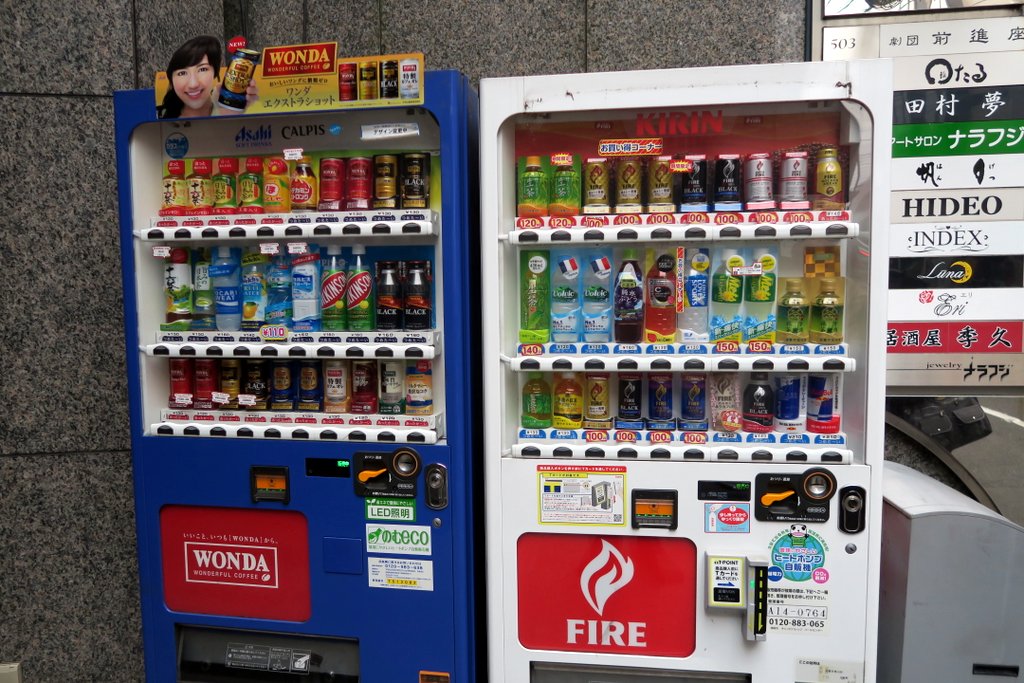 То, что в Японии повсюду стоят автоматы по продаже напитков знают почти все. Не все в курсе, что в них продаются не только холодные, но и горячие напитки. Зимой это очень спасает: можно подойти и купить баночку приятного тёплого кофе. (Я уже писал, что даже сама баночка будет продуманной до мельчайших деталей!)