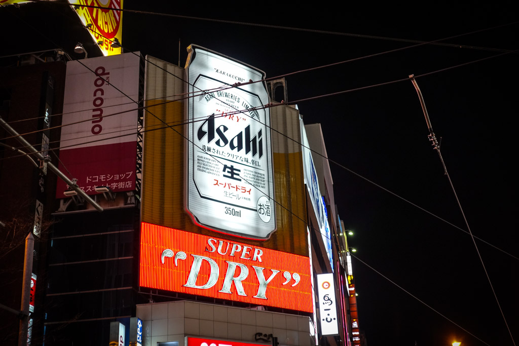 34. Со временем штаб-квартира пивоварни Саппоро переехала в Токио, и сейчас тут находится лишь один из пяти заводов компании (да и то, не в самом городе, а в 25км от него). Находясь здесь не ощущаешь какой-то особой лояльности местных жителей к этому бренду (как например в Амстердаме к пиву Heineken). По всюду висит и переливается реклама других японских пивных марок. Вот например Кирин.