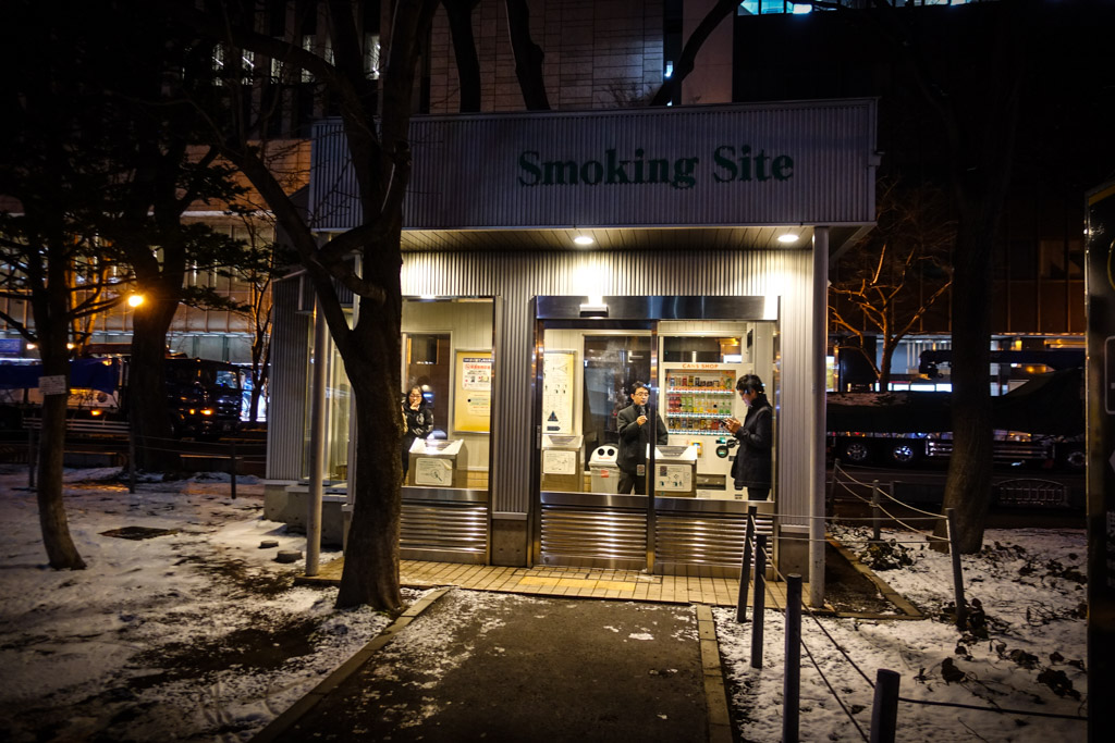 58. Уличная будка для курения. Как вы помните, в Японии нельзя просто так курить на улице.